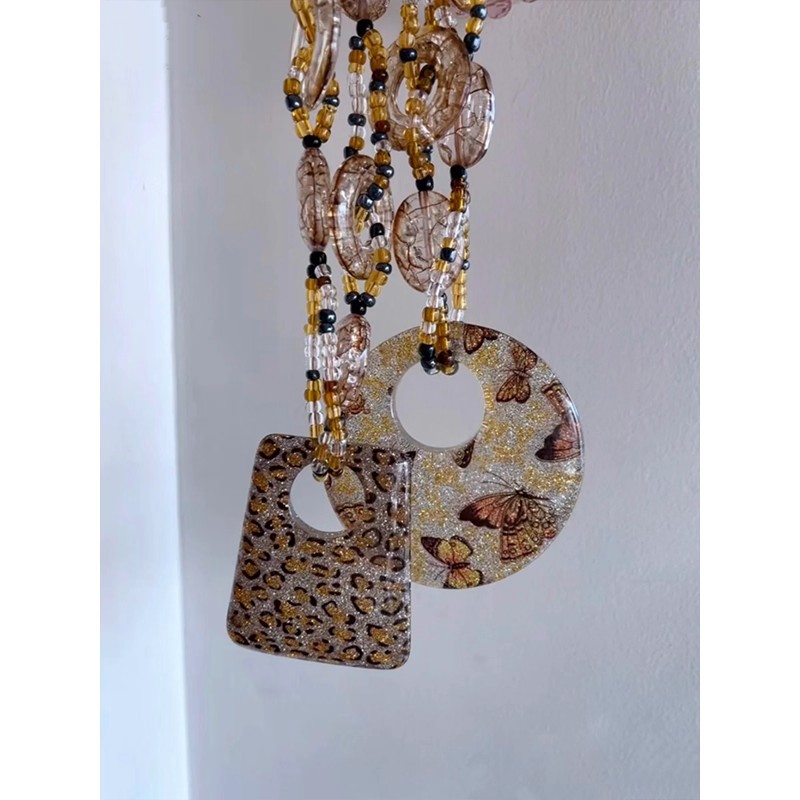 复古时髦古早风涩谷辣妹长款串珠豹纹项链y2k亚文化百搭毛衣链