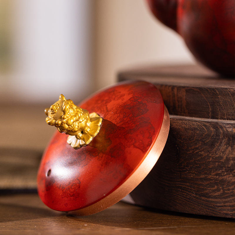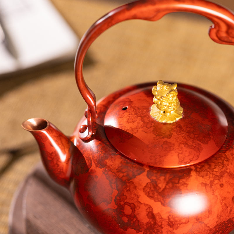 朱炳仁铜一狮无忧壶泡茶壶功夫茶具高端茶具摆件书房办公室家用