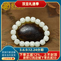 紫润轩新疆和田玉籽料手串白底水墨青花玉手链12MM意境手串男女款