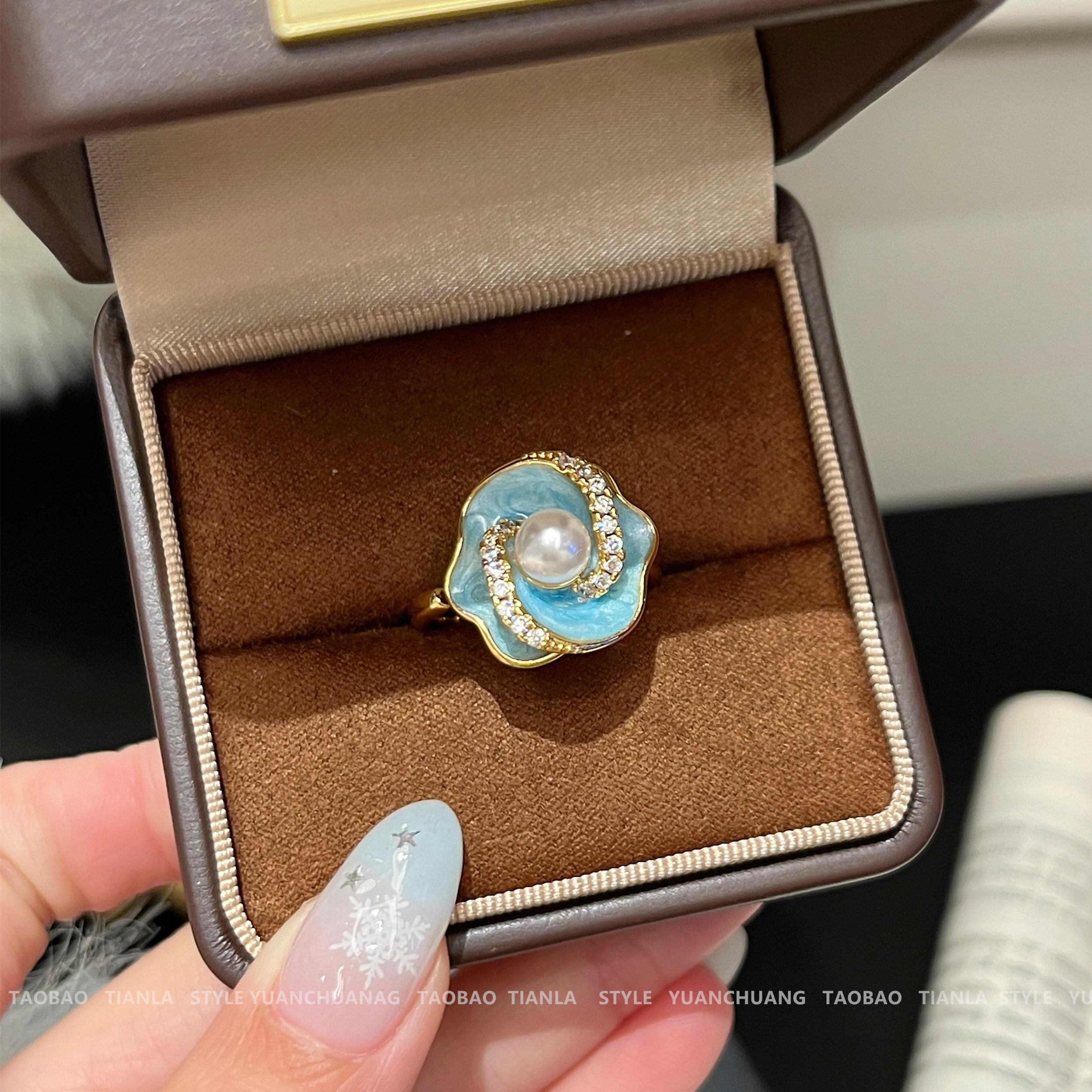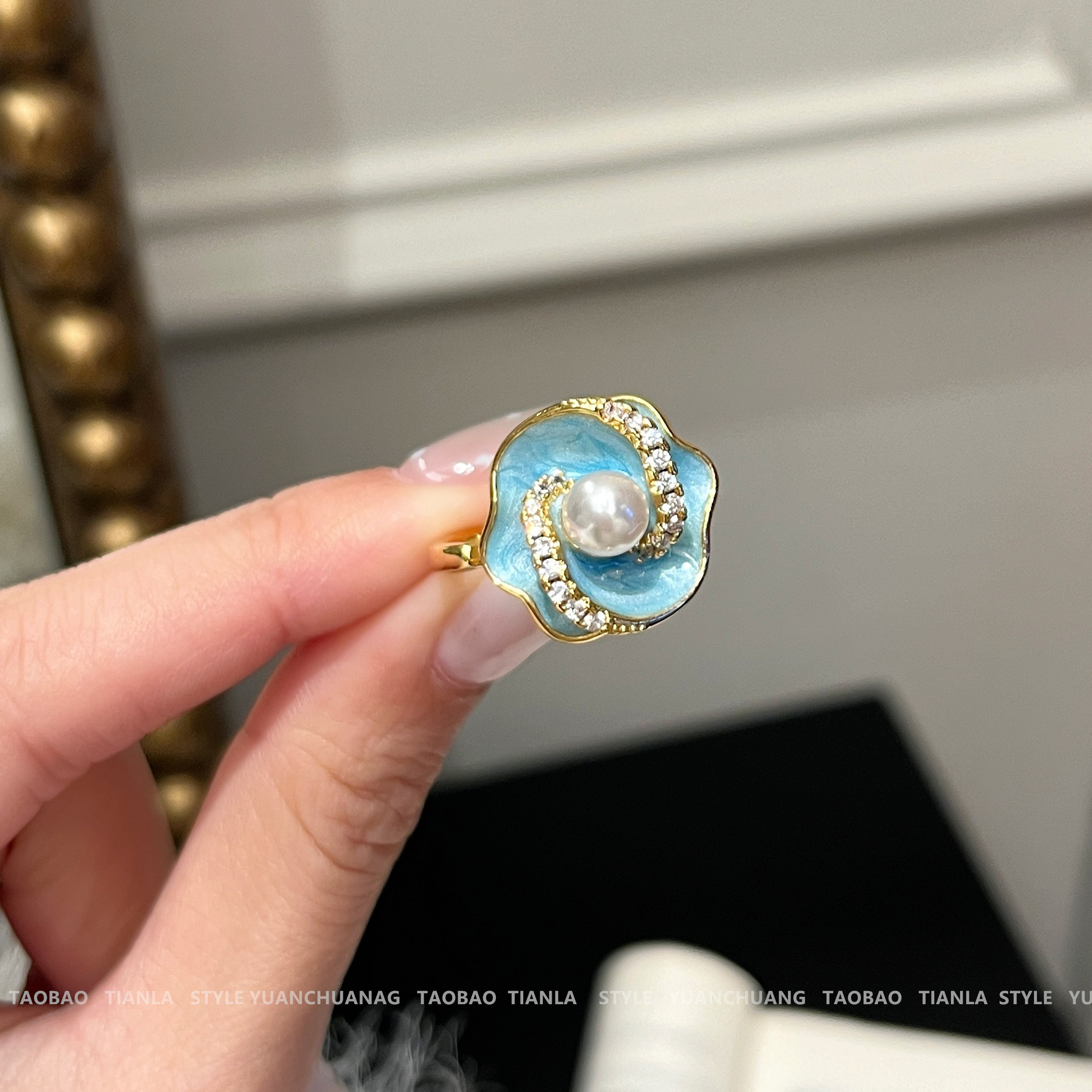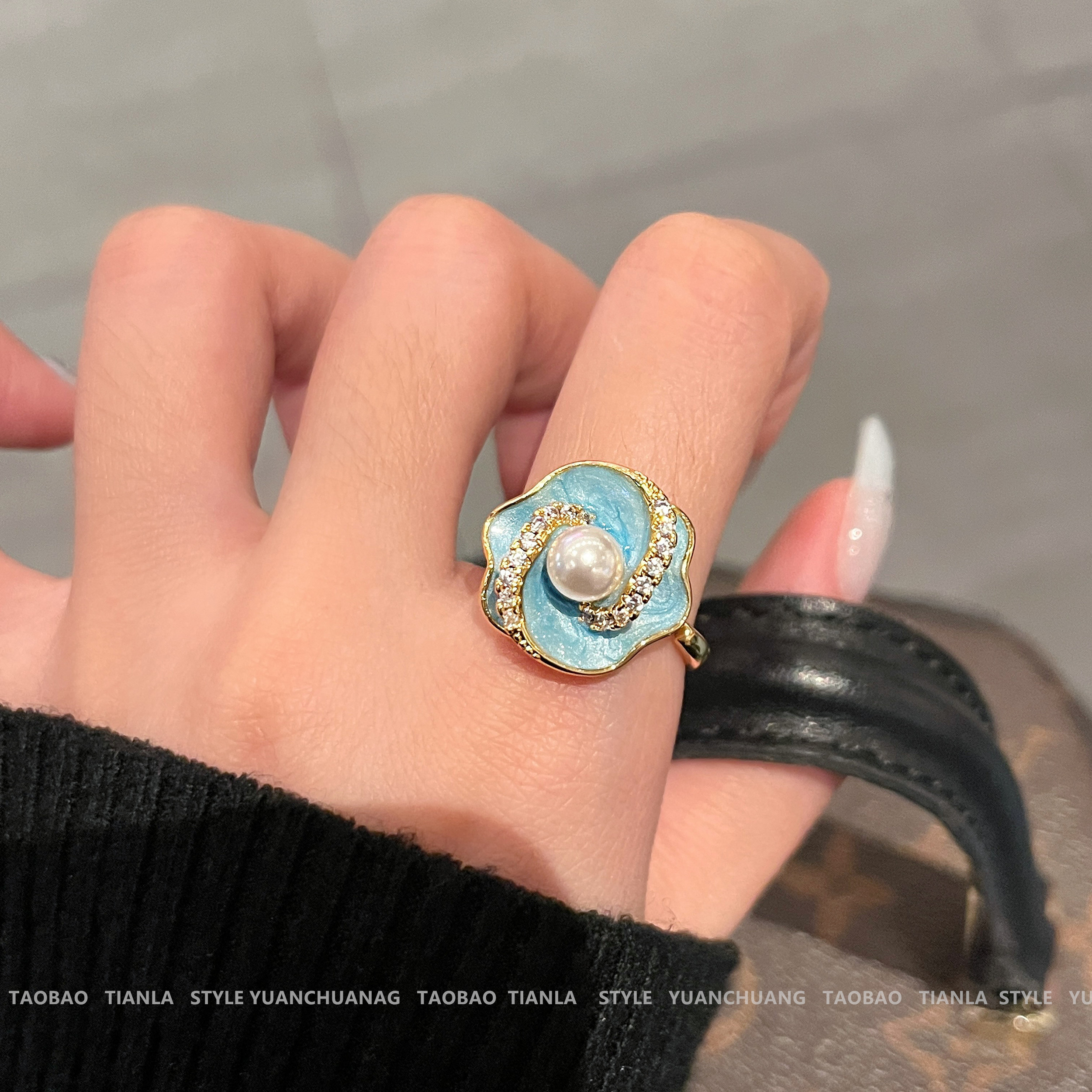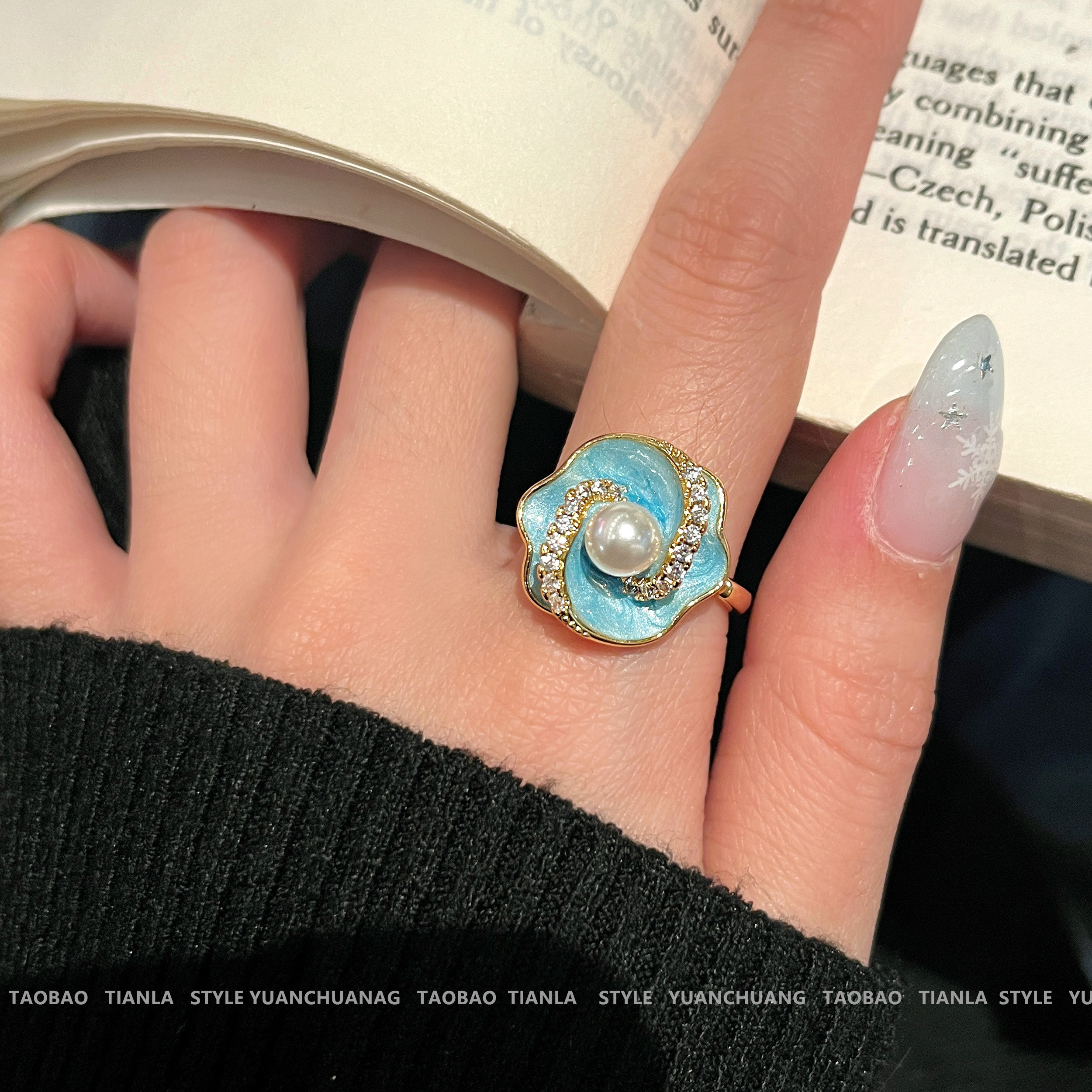 高颜值薄荷叶曼波绿色珍珠戒指女轻奢高级感小众设计感气质食指环