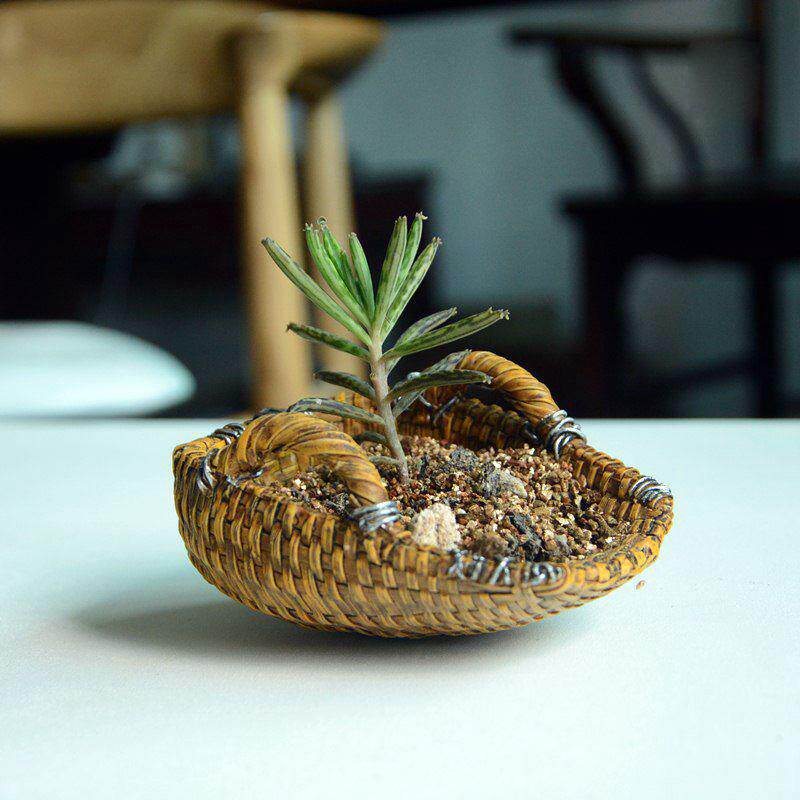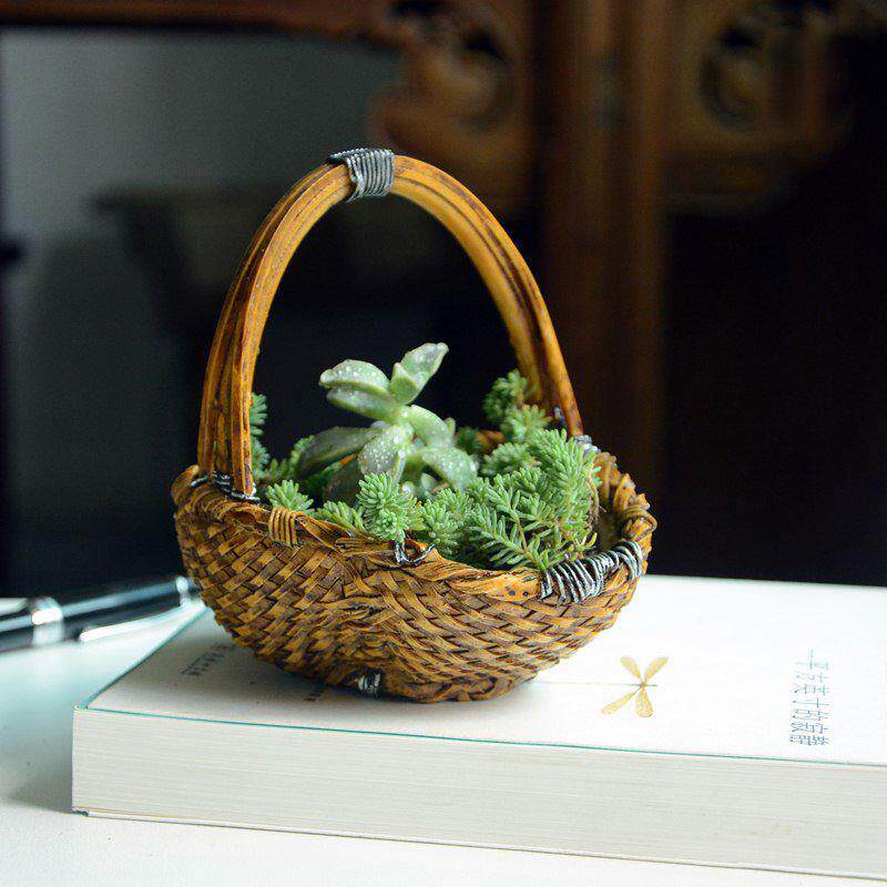 创意个性迷你小篮子树脂多肉花盆仿竹编壁挂藤编装饰品礼物圣诞节