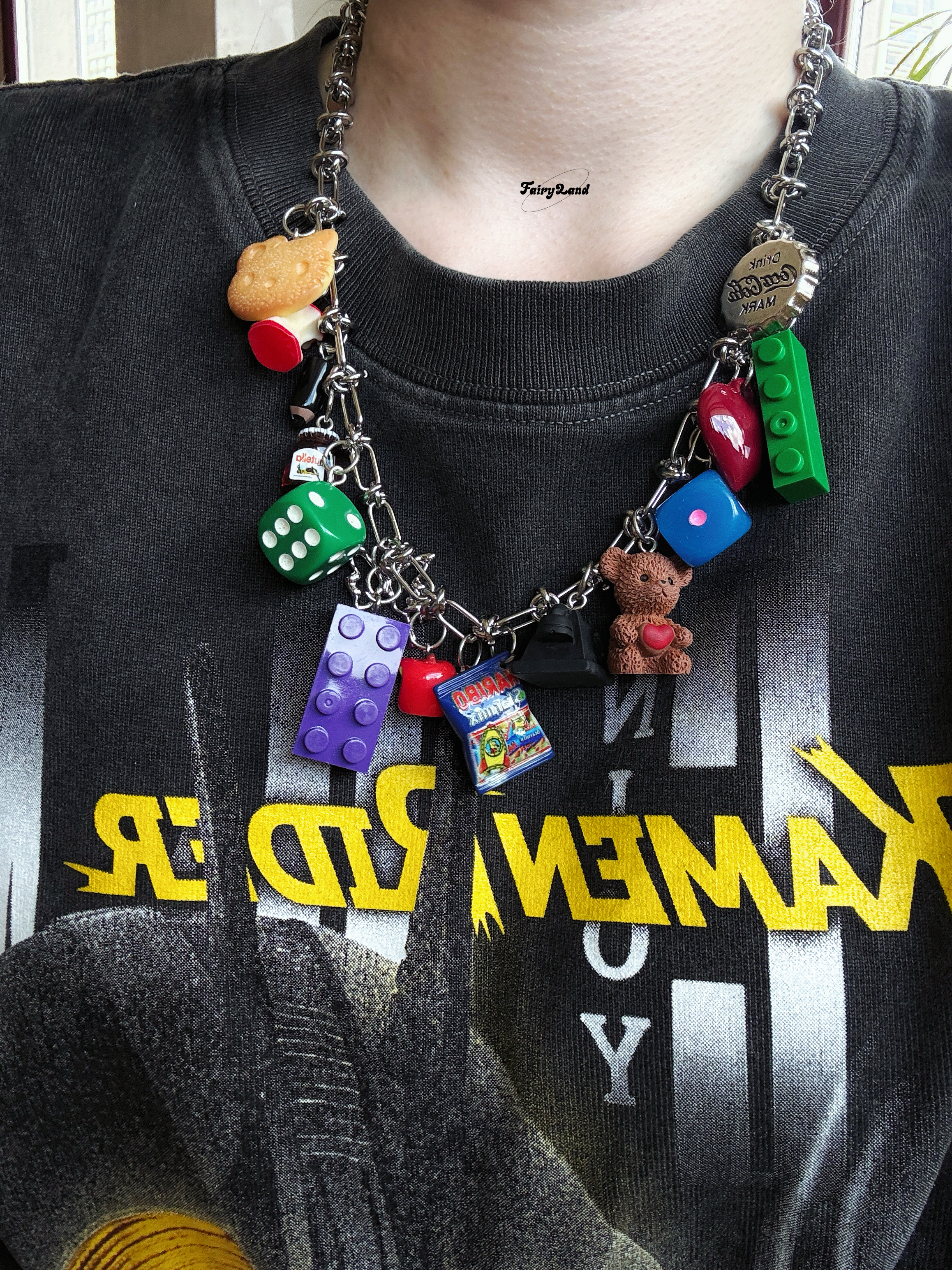 原创多元素极繁项链挂件骰子小熊饼干腰间挂饰kt钥匙扣