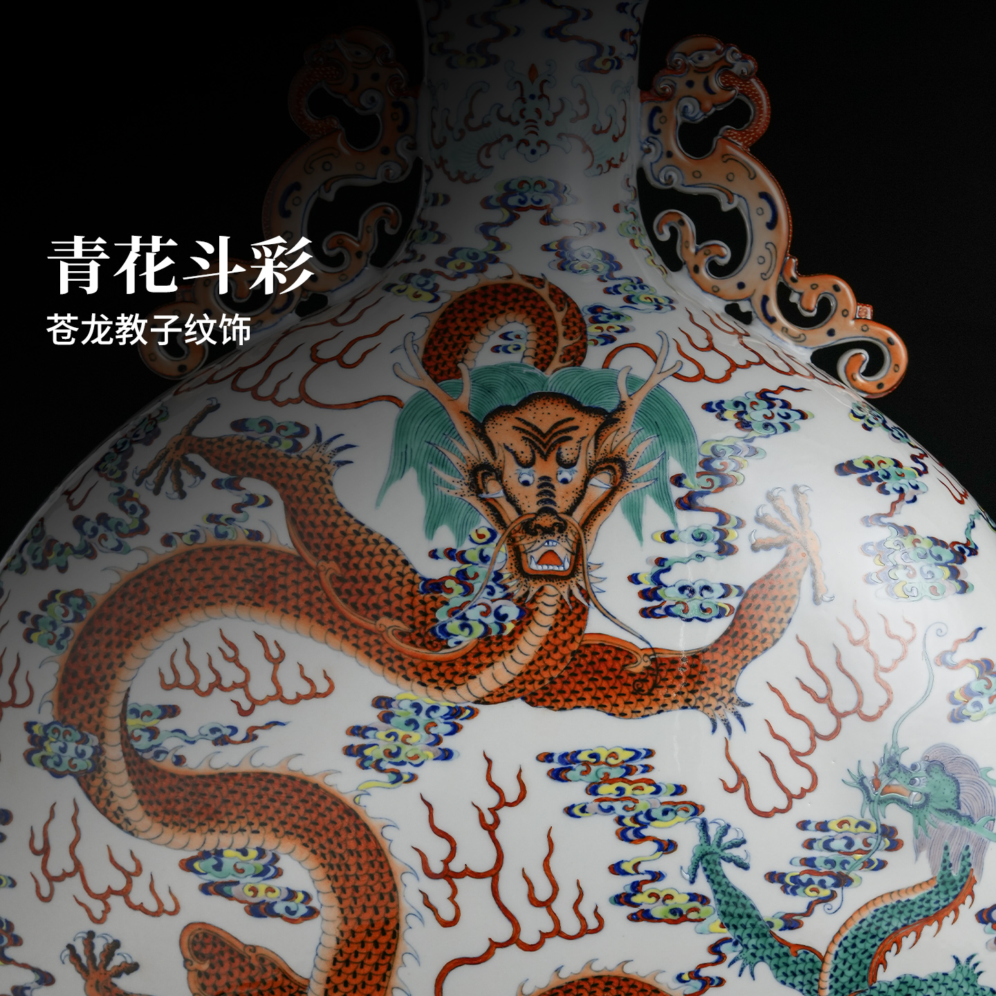 景德镇官方陶瓷青花斗彩抱月瓶中式仿古手工瓷器家用桌面台面摆件