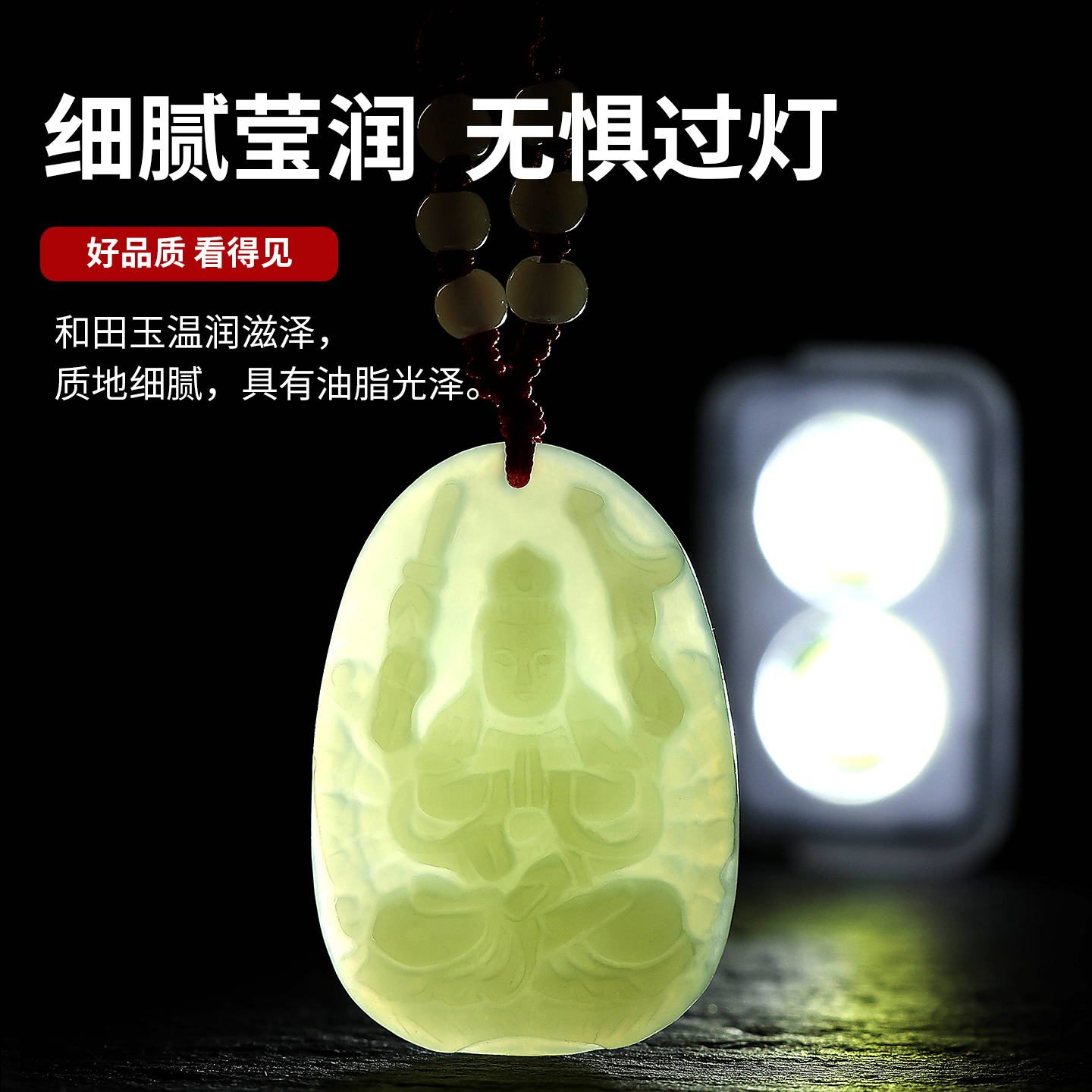 和田玉观音吊坠男款新疆玉佛玉牌真玉女本命年吉祥物项链籽料玉佩