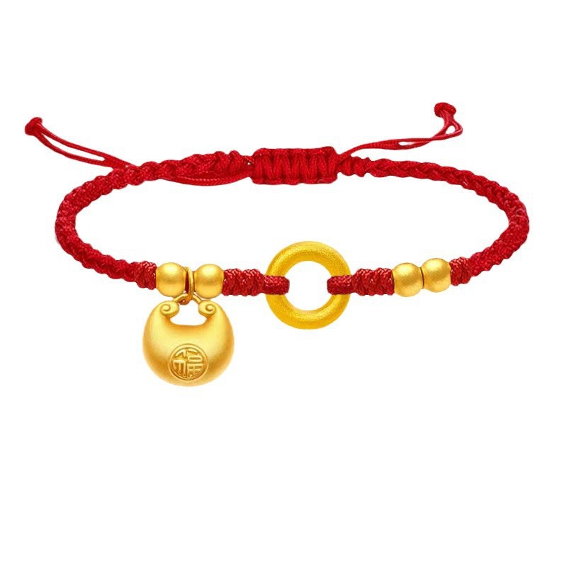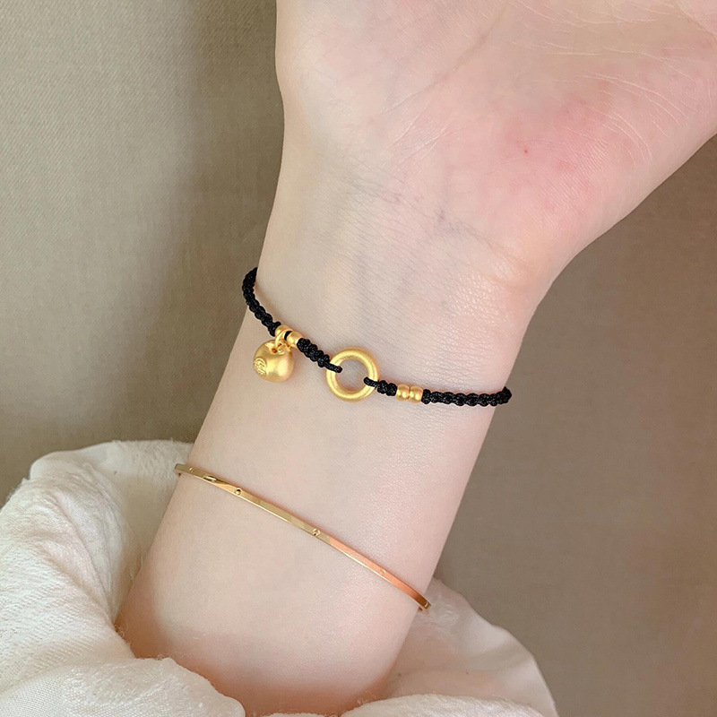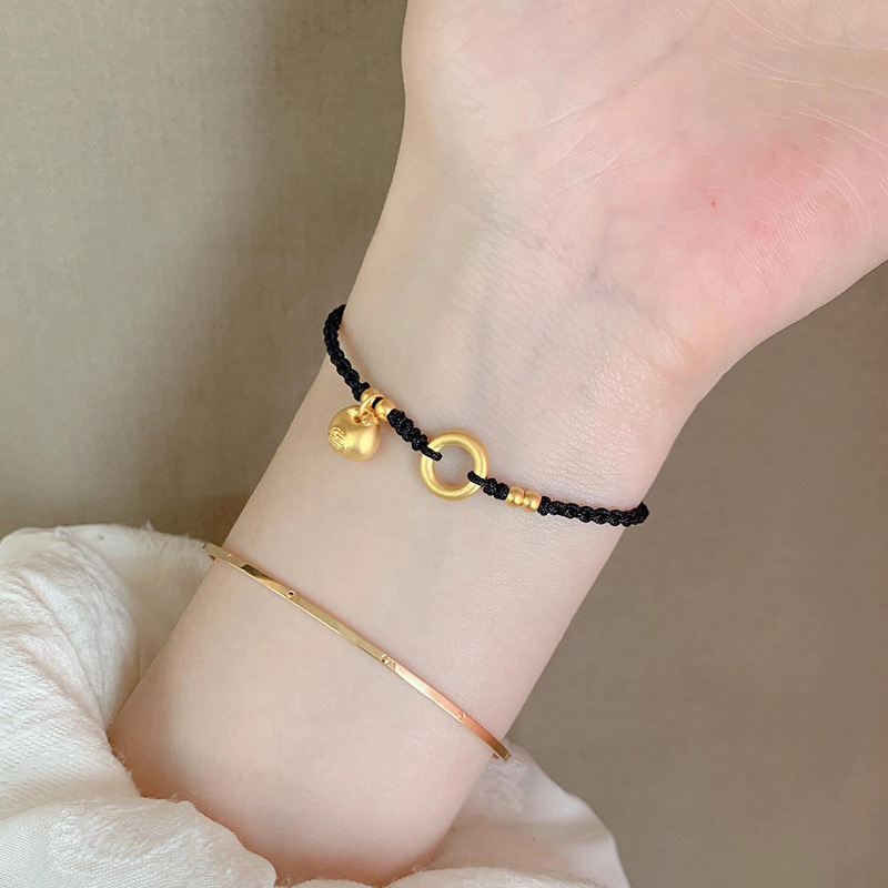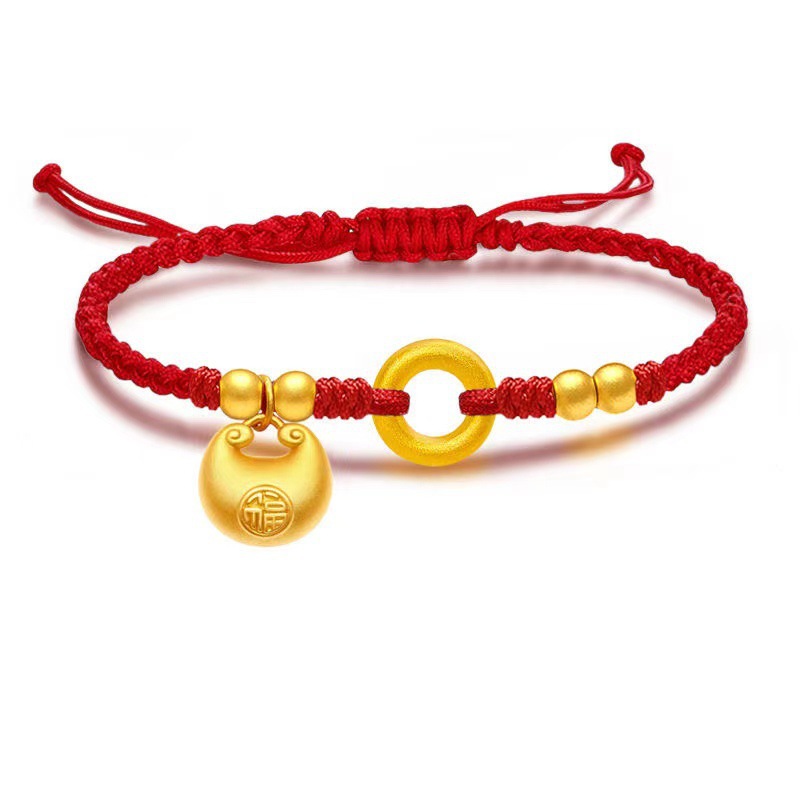 小胖福金坨坨平安扣好运珠手绳黑红手工编织手链本命年送礼情人节