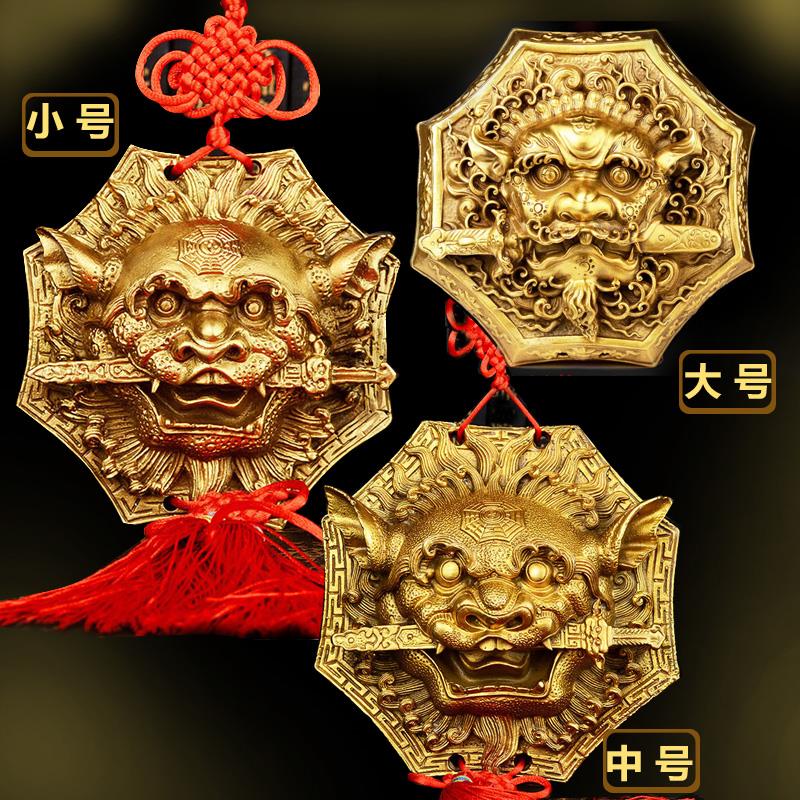 狮咬剑纯铜牌八卦镜大门对门窗口狮子虎头牌吞口兽头睚眦瑞兽挂件