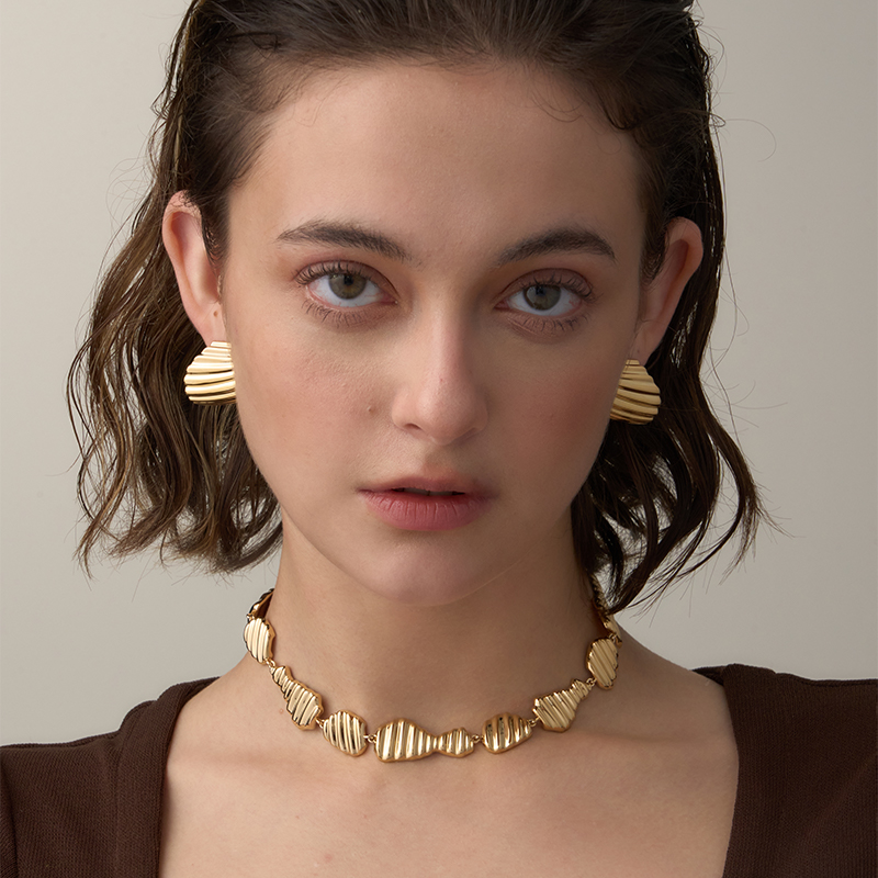 DINN DINN DESIGN简系列曲面2023新款拼接重工项链轻奢小众金色