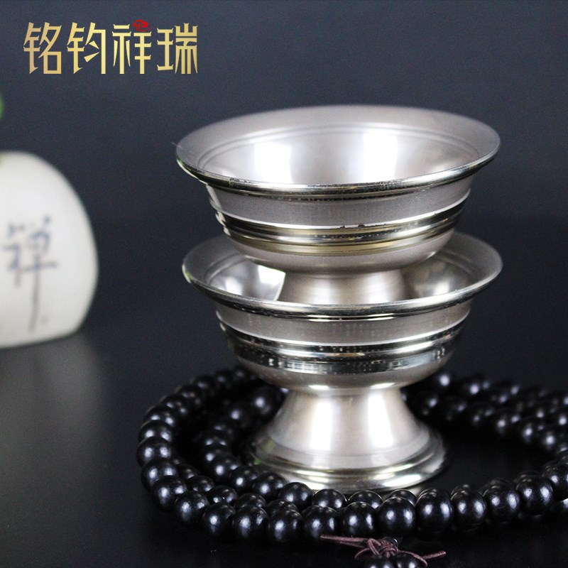 尼泊尔进口青铜光面供水七供水杯高脚供碗包边藏式家用摆件加厚