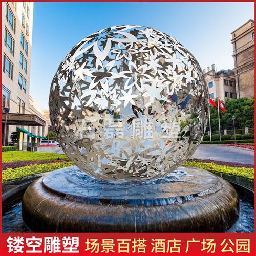 大型不锈钢镂空球雕塑户外售楼处水池景观摆件镜面金属圆球定制