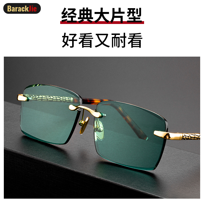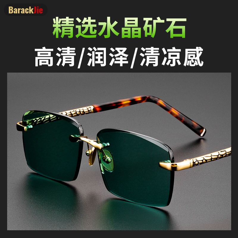 墨绿水晶眼镜水晶石墨镜男清凉石头镜无框高清时尚太阳镜招财复古