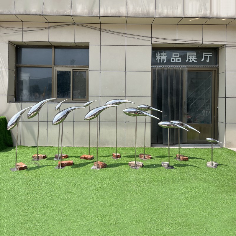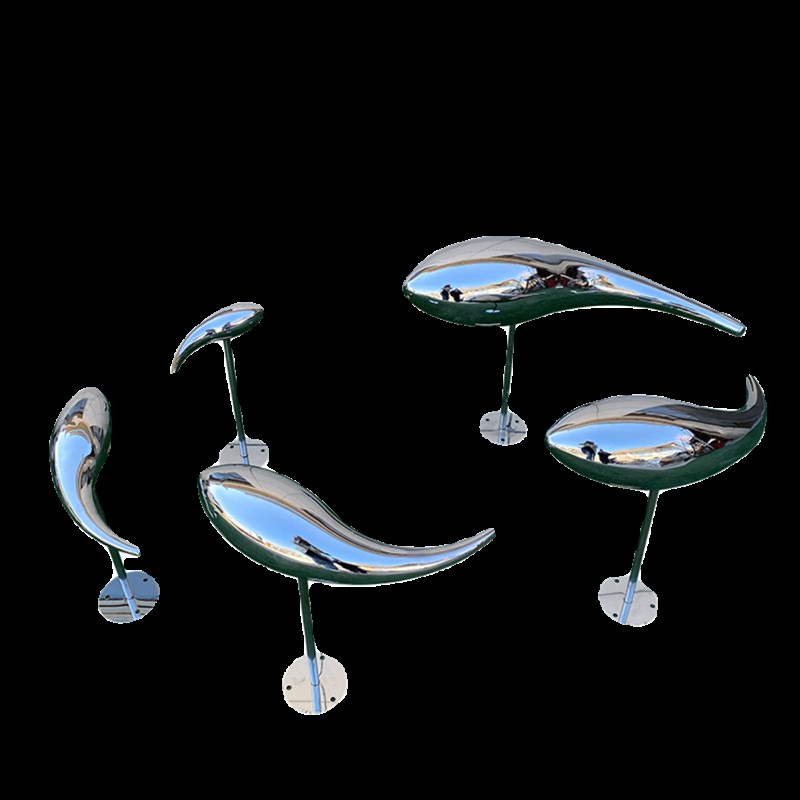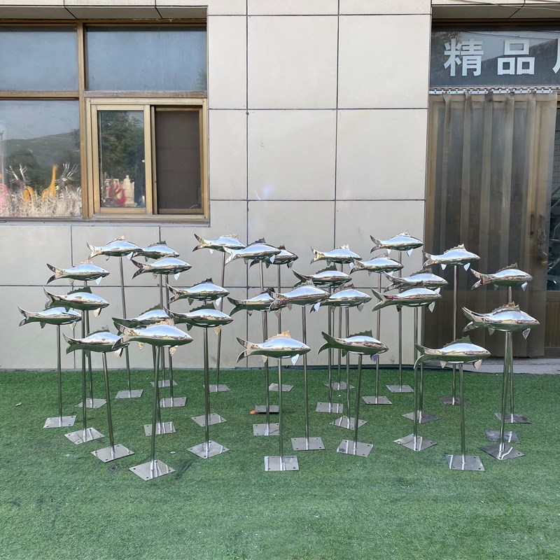 不锈钢镜面小鱼雕塑艺术墙面庭院水池抽象金属鱼挂件水景户外装饰