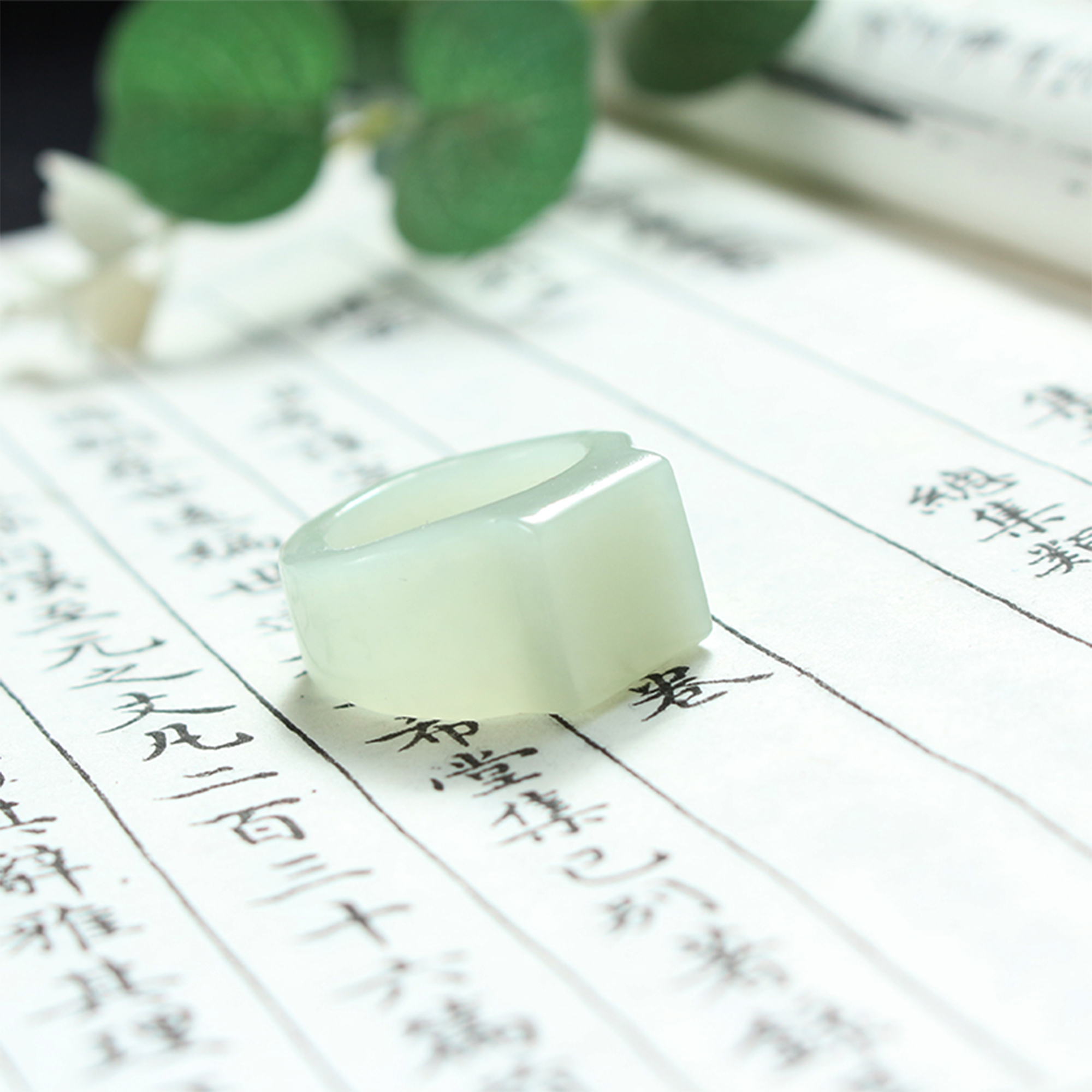 新款和田玉青白玉方形马鞍戒指男女款玉石扳指独款两用指环把玩件