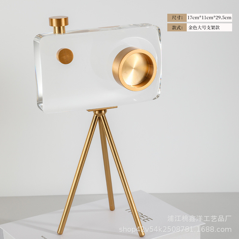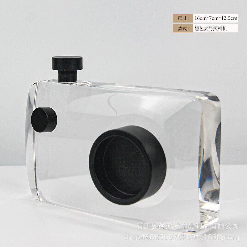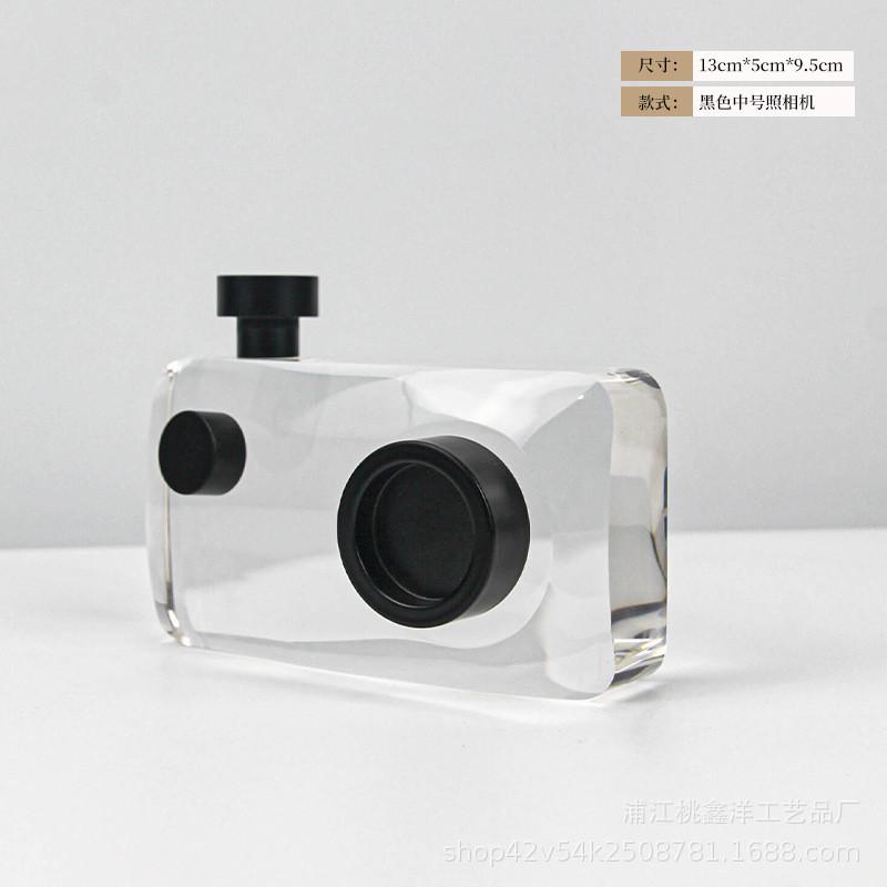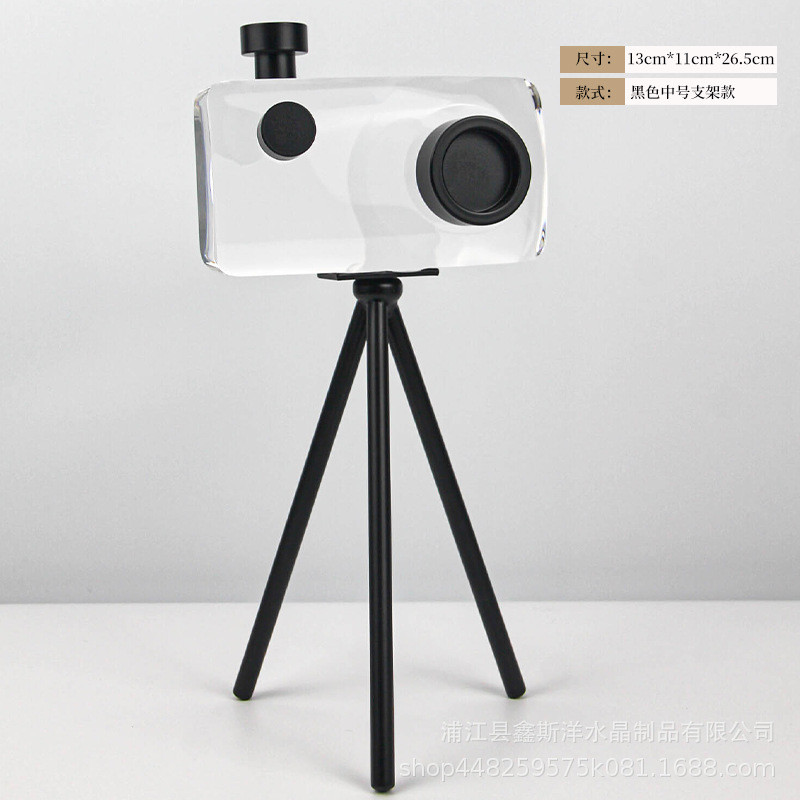 轻奢黑色民宿照相机摆件样板房售楼部客厅水晶别墅酒店大厅工艺品