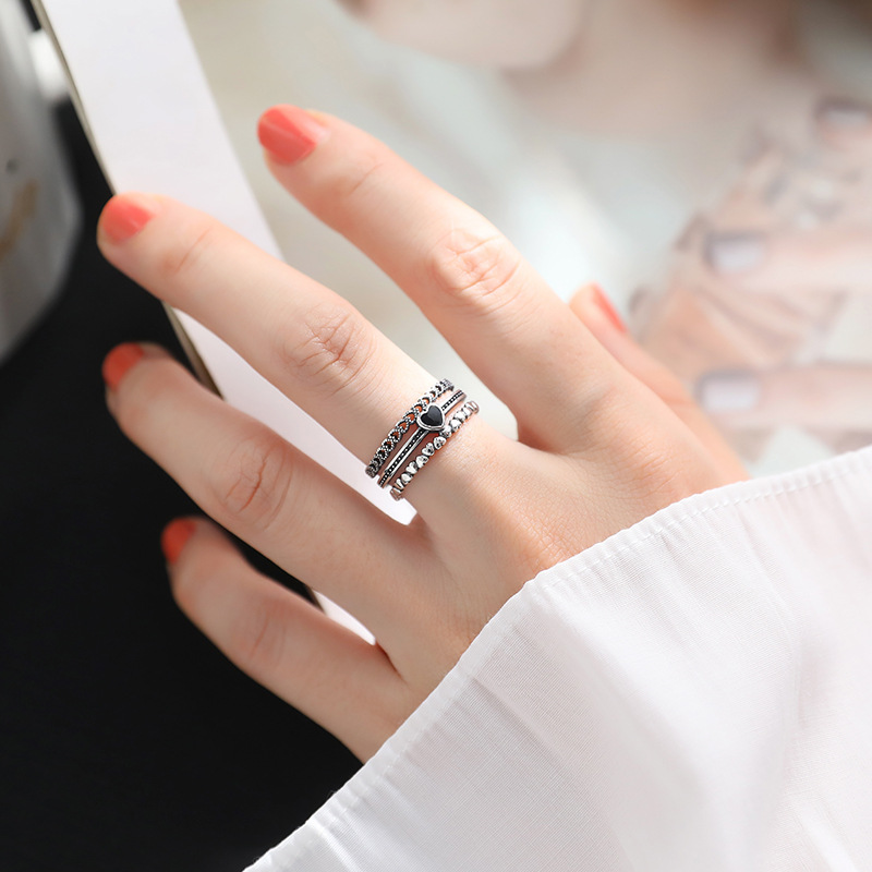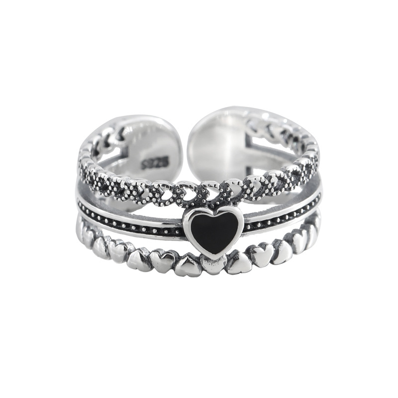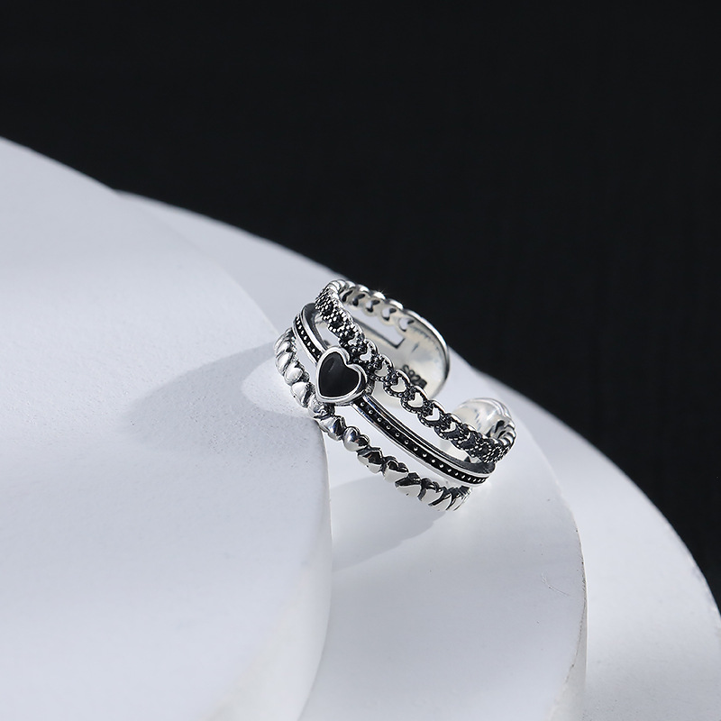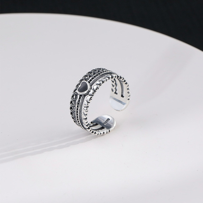 925纯银复古镂空爱心锆石开口食指戒指女轻奢高级感2025新款爆款