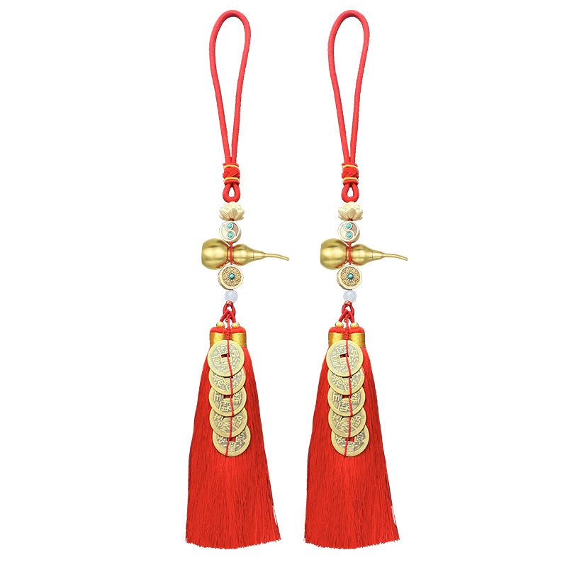 铜五帝钱葫芦挂件门对门黄铜中式家居流苏挂饰开口葫芦车载饰品