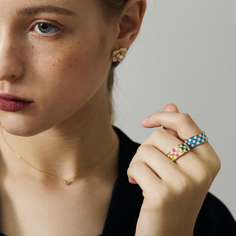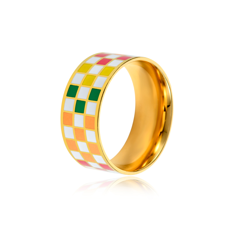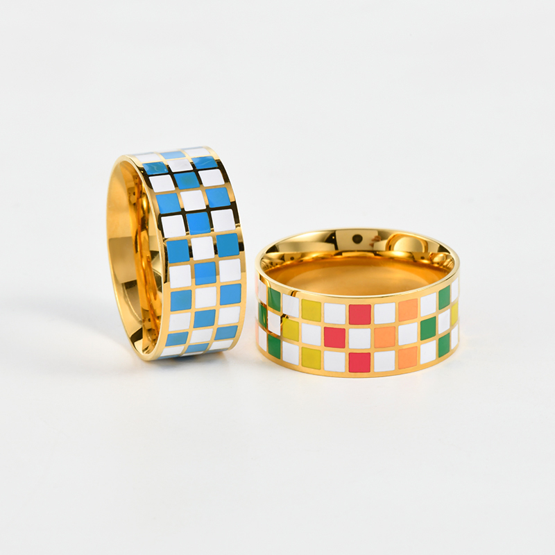 【买3免1】时尚百搭彩色棋盘格戒指 网红钛钢指环ins博主小众