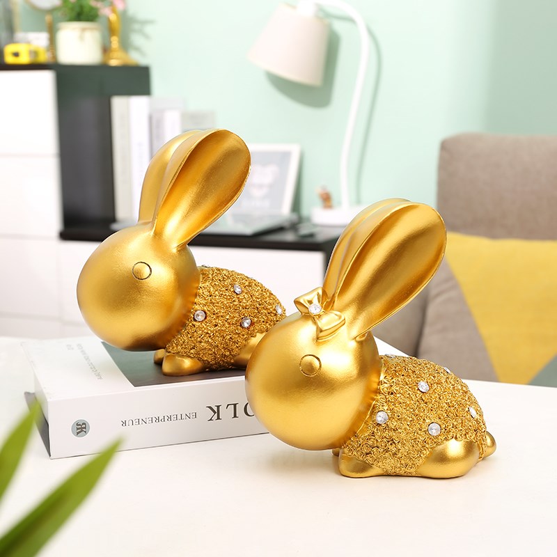 现代轻奢高档兔子摆件家居客厅电A视酒柜装饰品玄关卧室金兔小摆