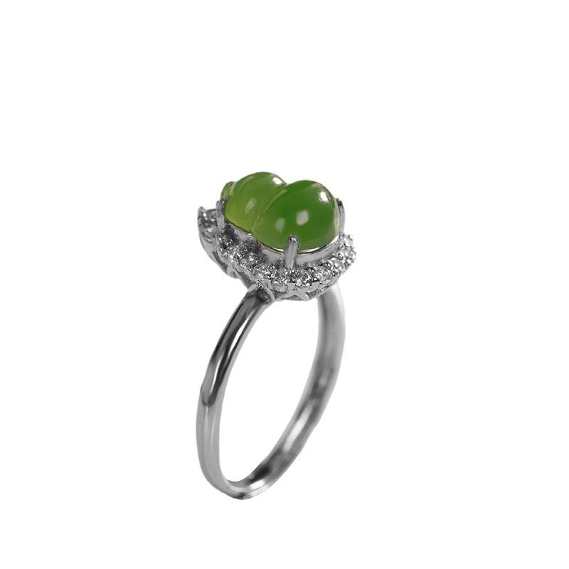 本命年925纯银镶嵌和田碧玉葫芦戒指简约女款百搭开口指环礼物