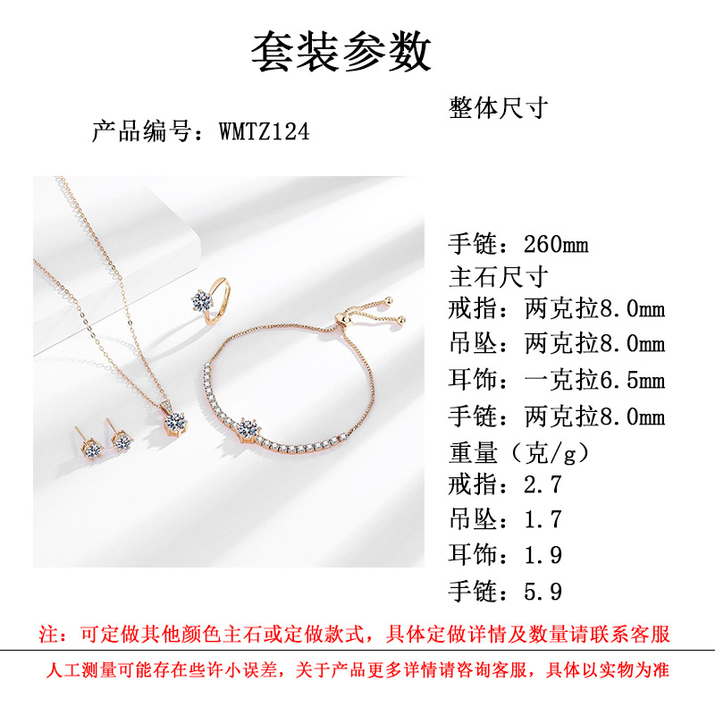 直播热卖超闪经典六爪女款四件套装手链耳钉戒指项链吊坠轻奢饰品