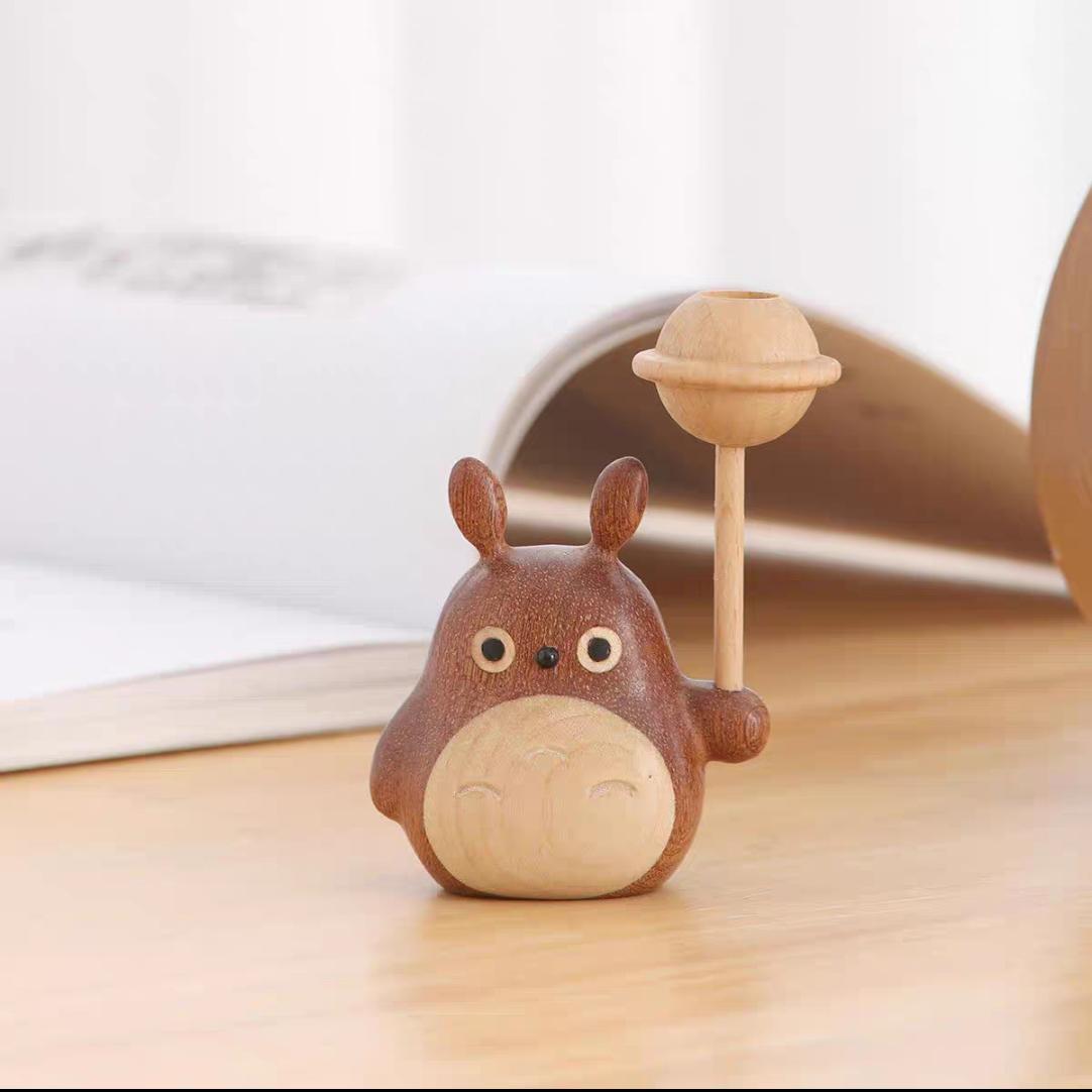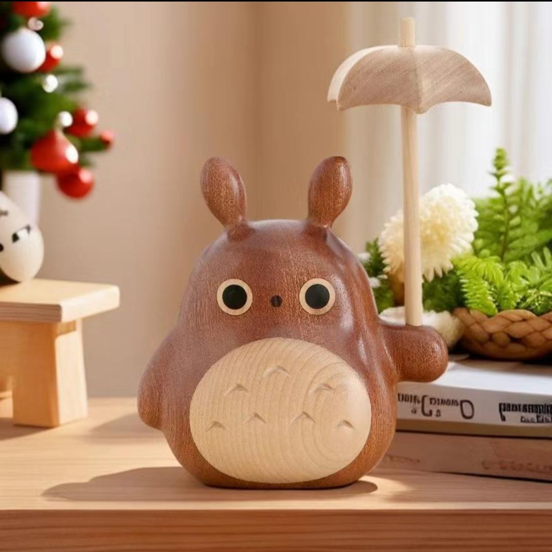 实木雕刻创意轻奢大小龙猫风车雨伞车载香薰工艺品家居摆件礼物