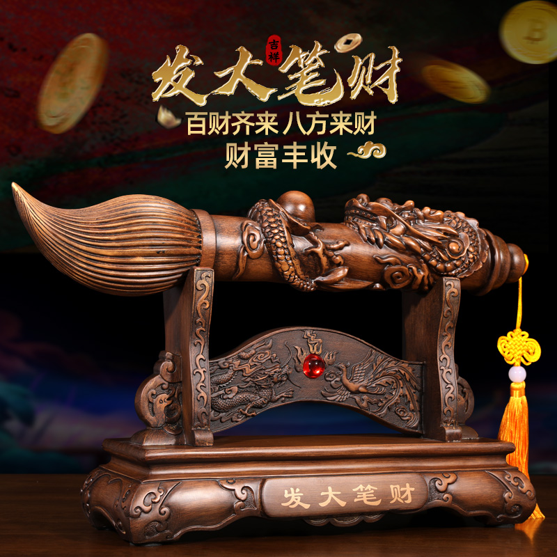 招财发财毛笔摆件客厅q办公室桌面摆设酒柜装饰品开业乔迁新居礼