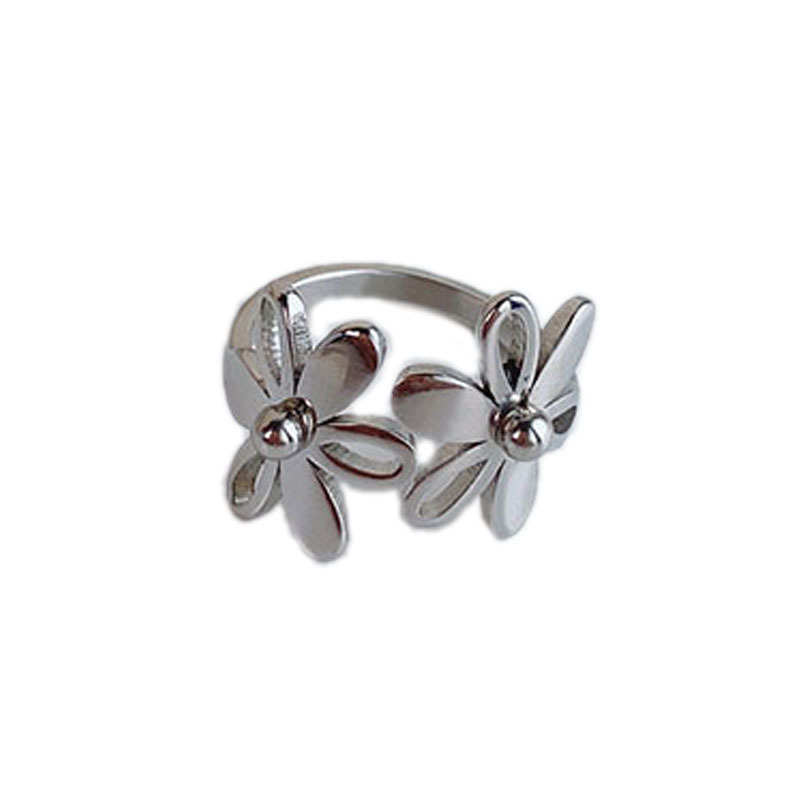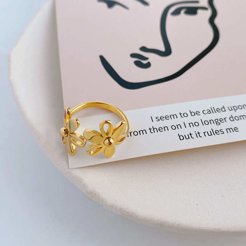 韩版简约钛钢戒指女花朵开口小众高级感冷淡风复古食指个性潮饰品