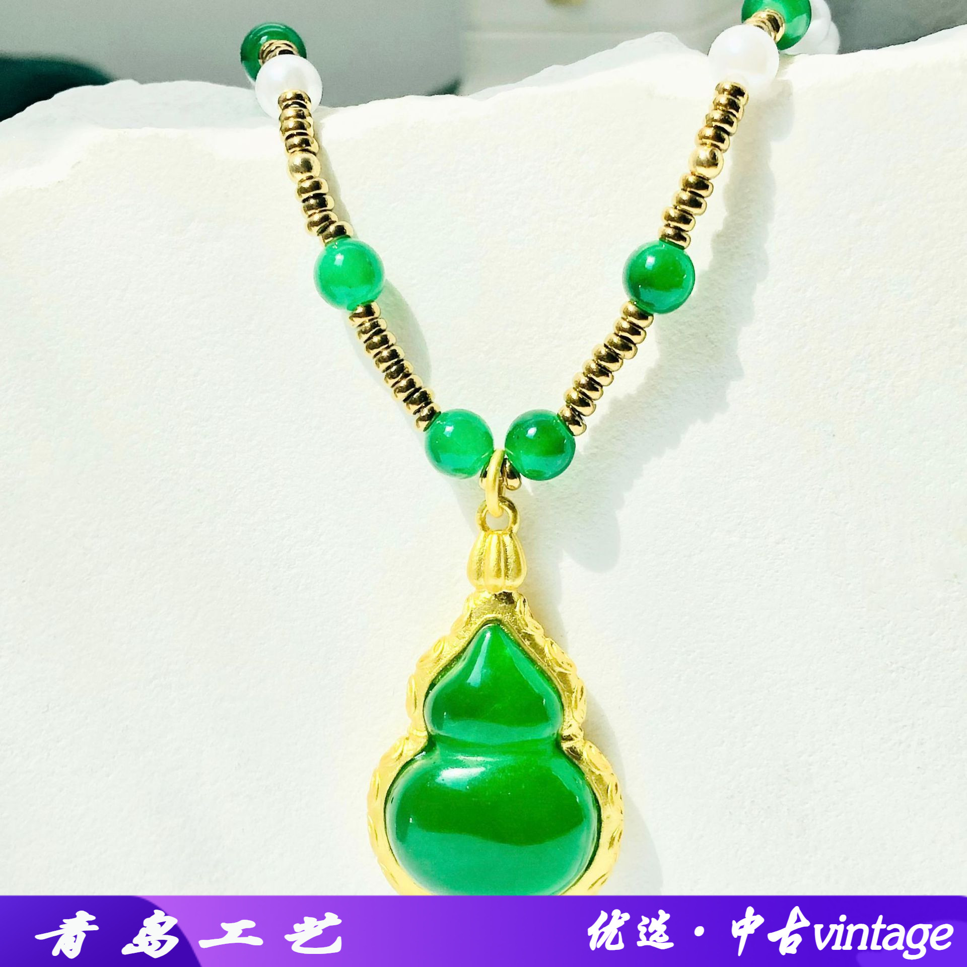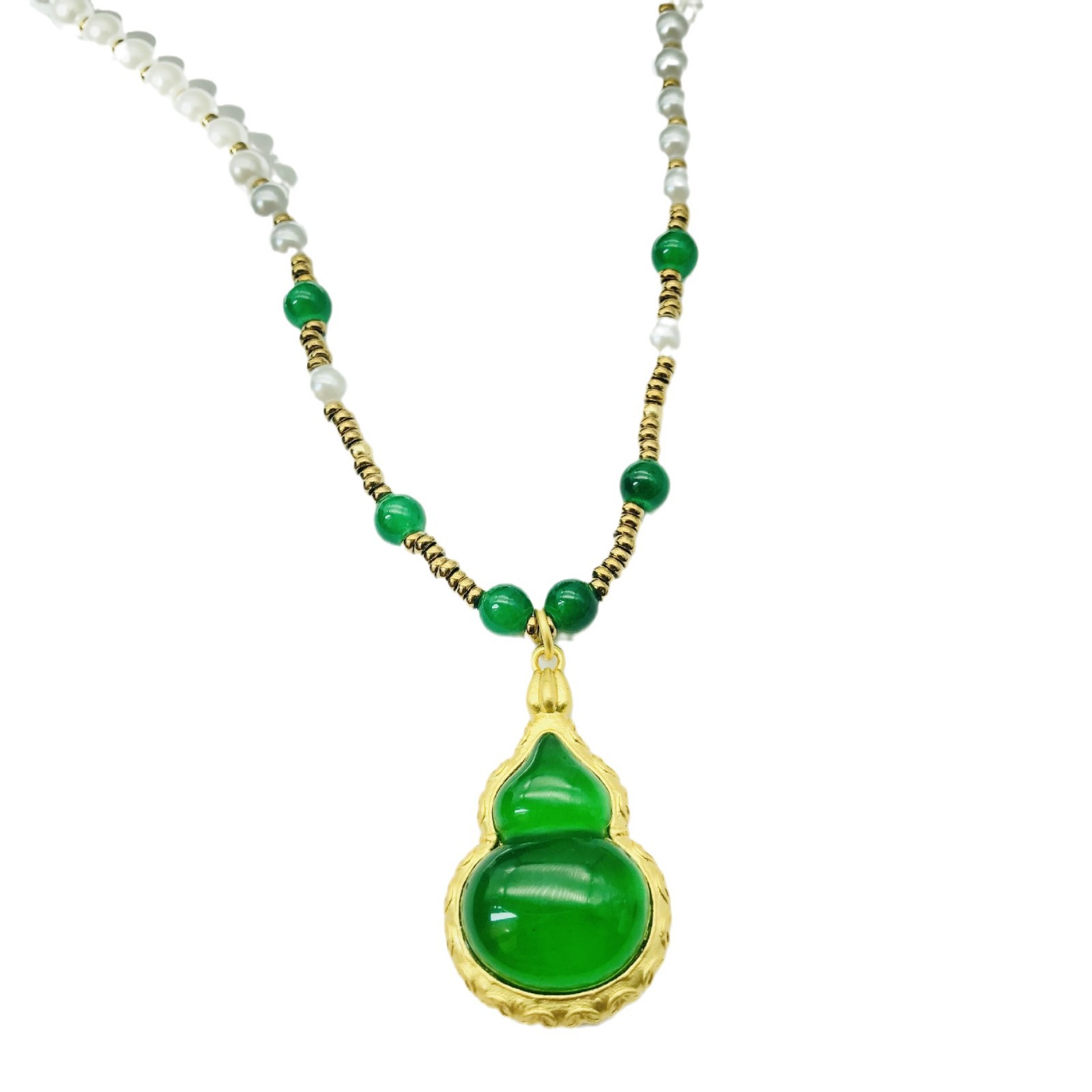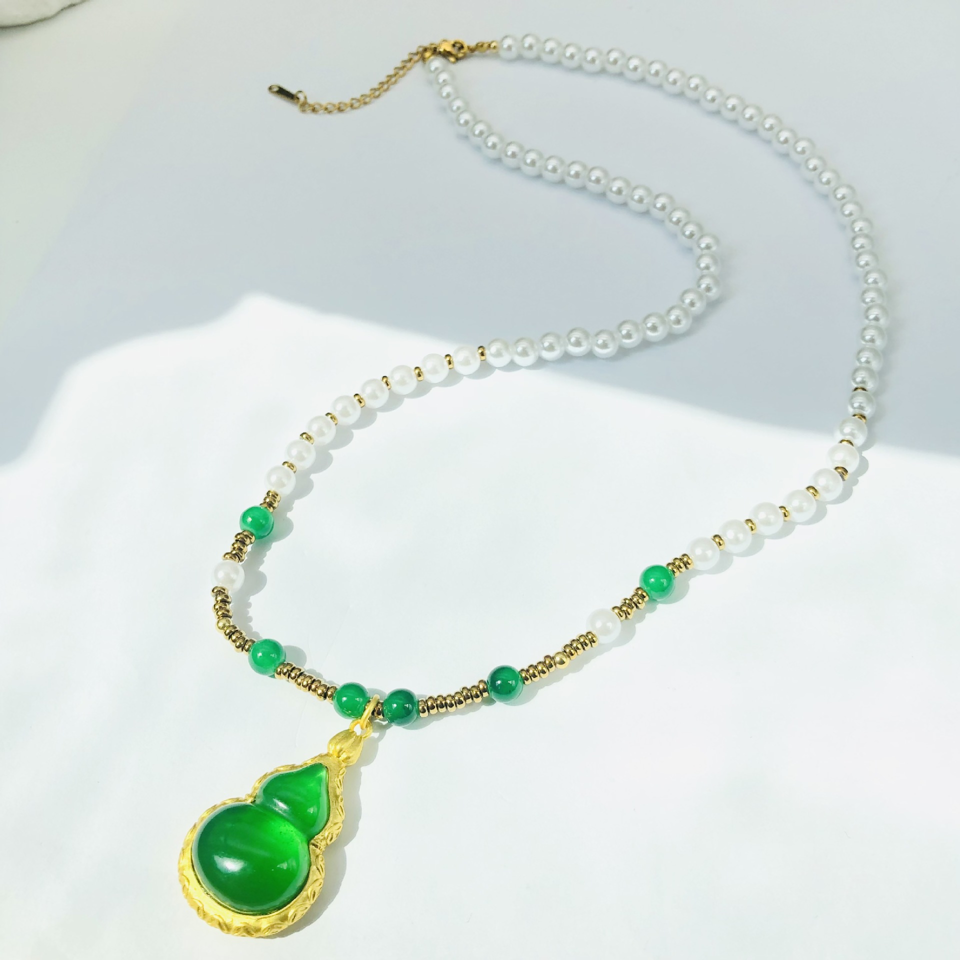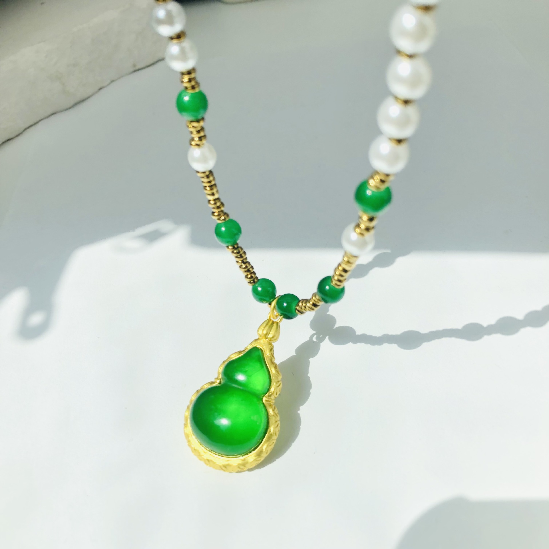 新中式绿色葫芦吊坠项链气质锁骨链国潮复古感女项链厂家直供