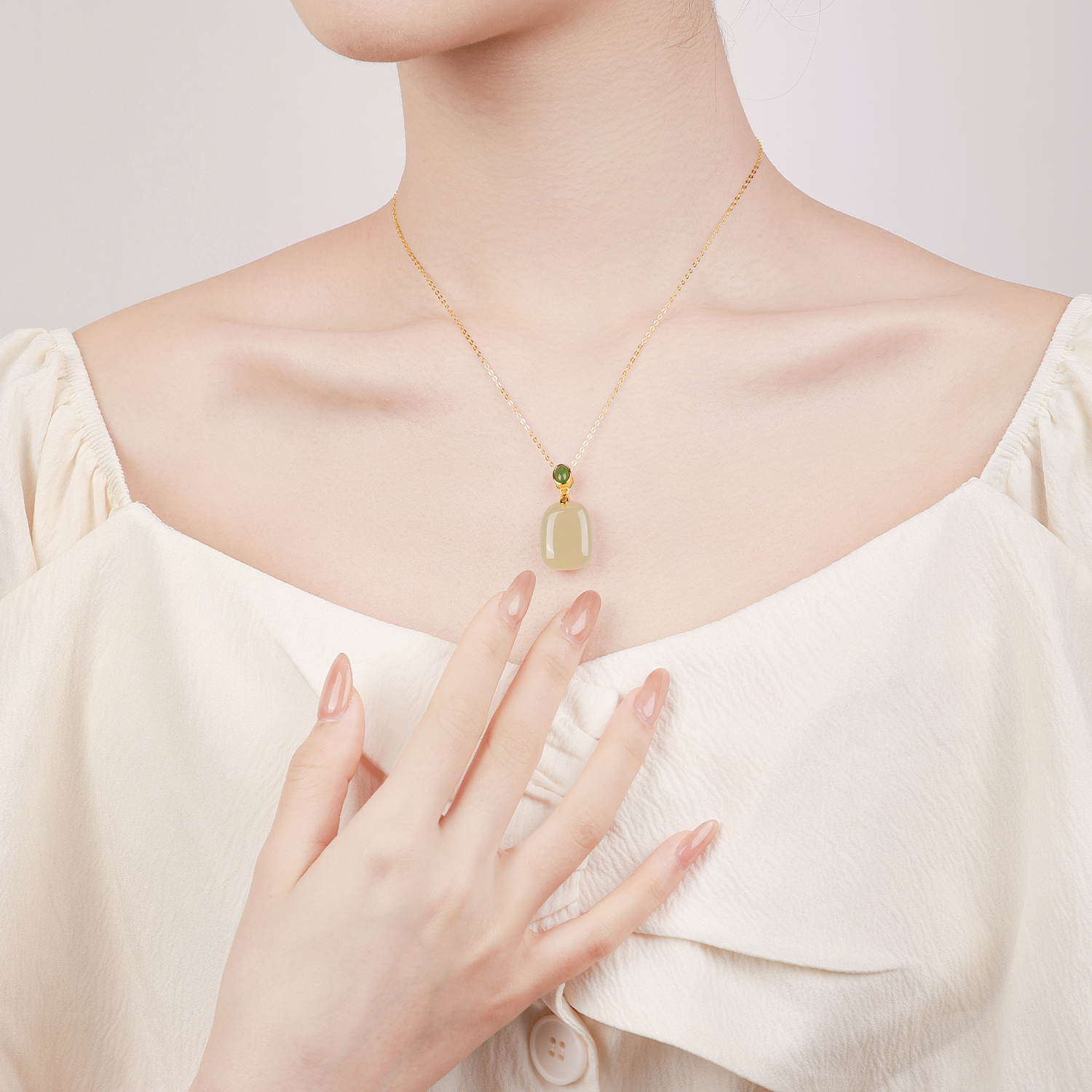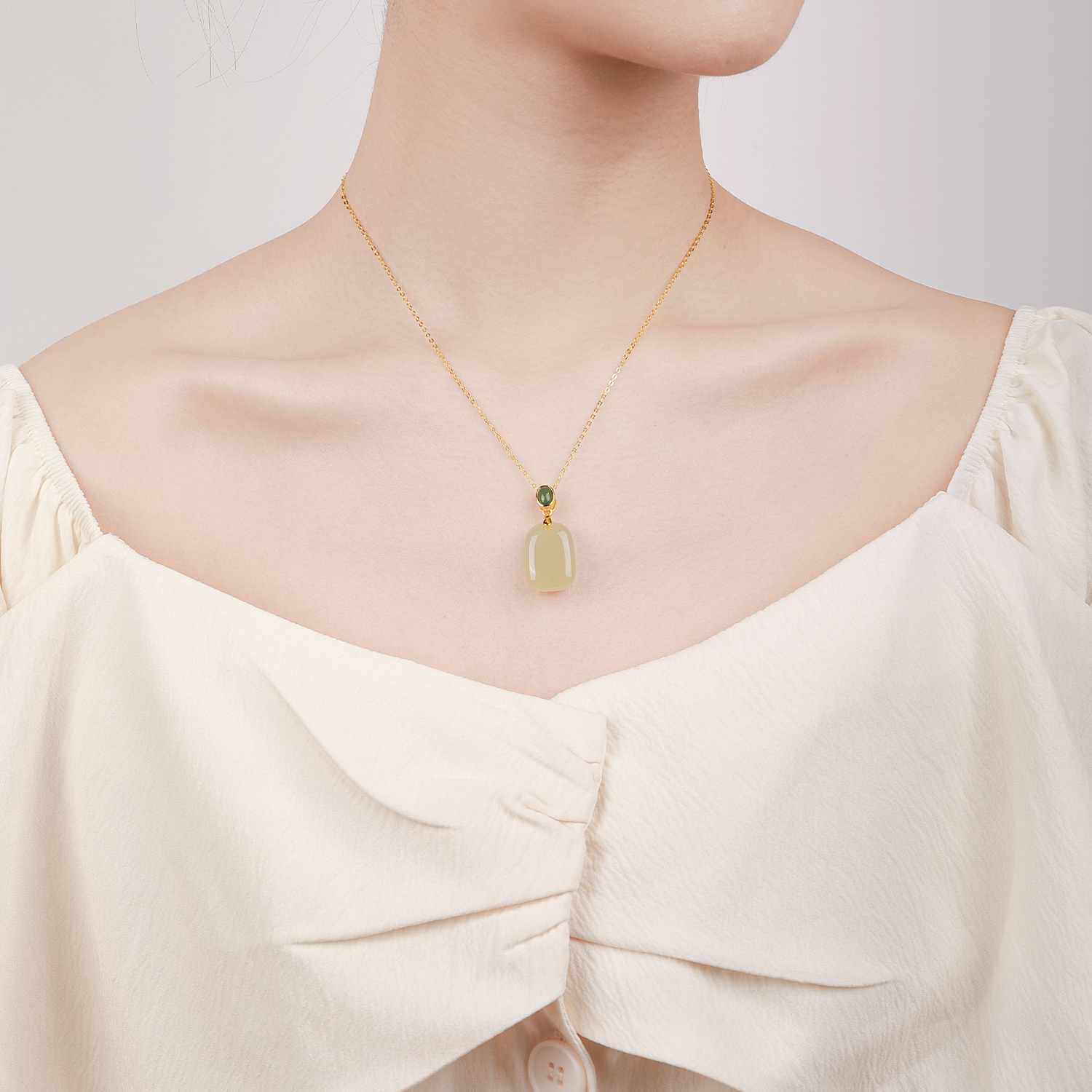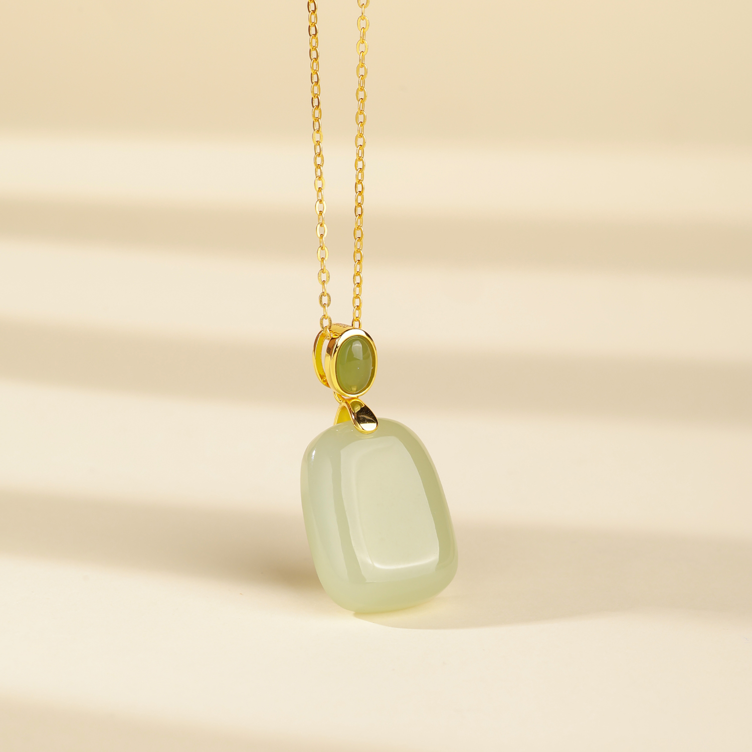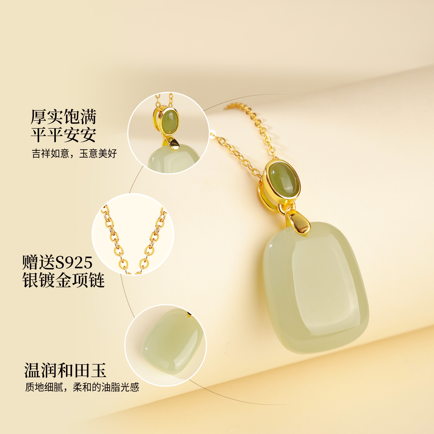 石方界平安无事牌吊坠女款天然和田玉纯银项链本命年送妈妈款礼物