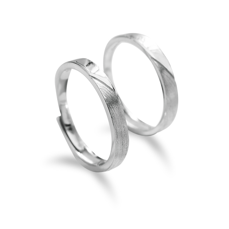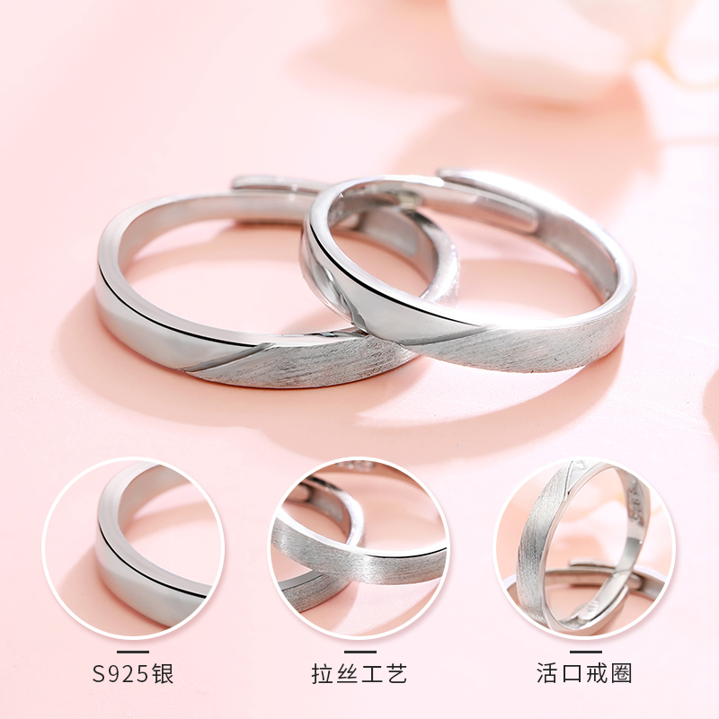 【电商】梦祥银S925银情侣对戒小众设计简约活口调节古法素圈戒指