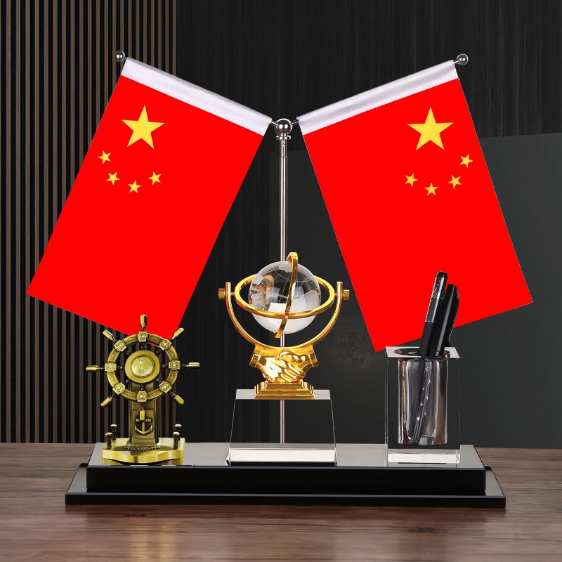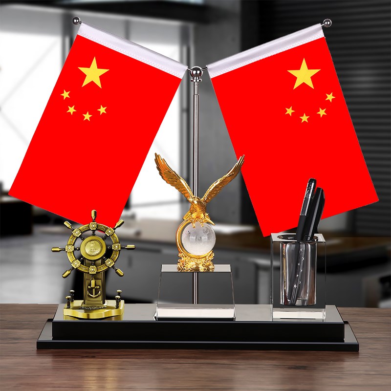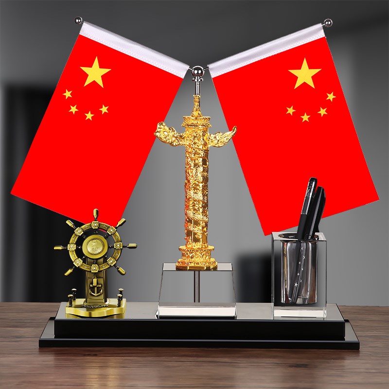 办公室装饰摆件轻奢高档桌面收纳A笔筒摆台创意公司礼品定制红旗