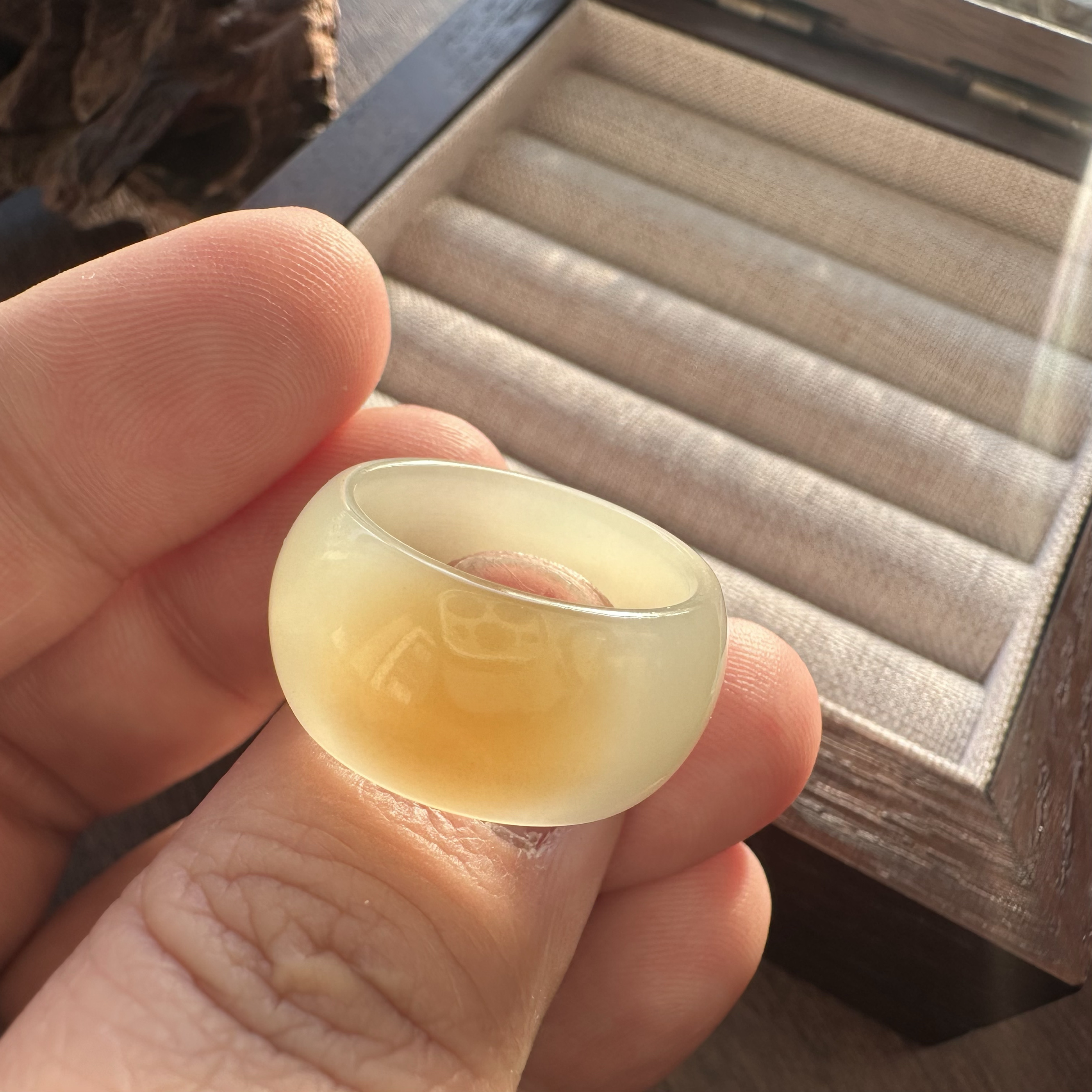 和田玉糖白一口糖胖圆戒指港15包容针尖矿点内径17.3宽11.6厚3.4