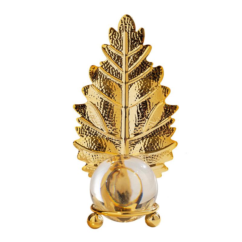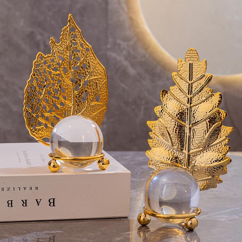 厂家直销铁艺金色树叶水晶球摆件创意家居玄关电视柜办公桌面摆设
