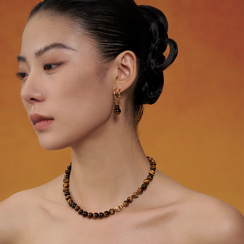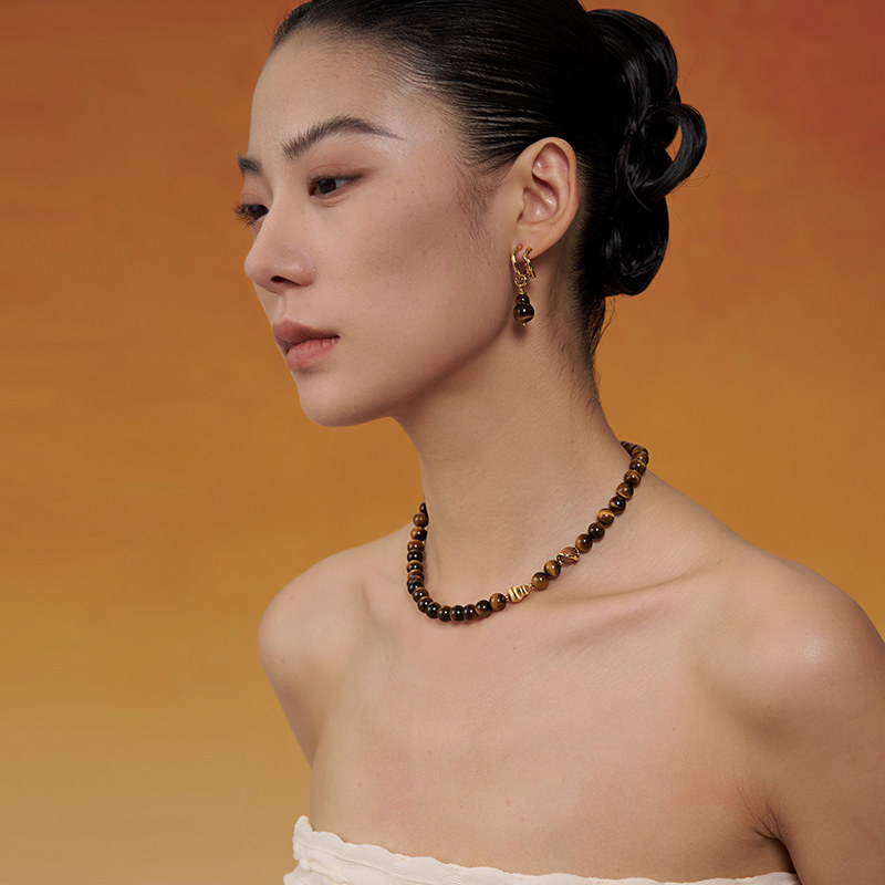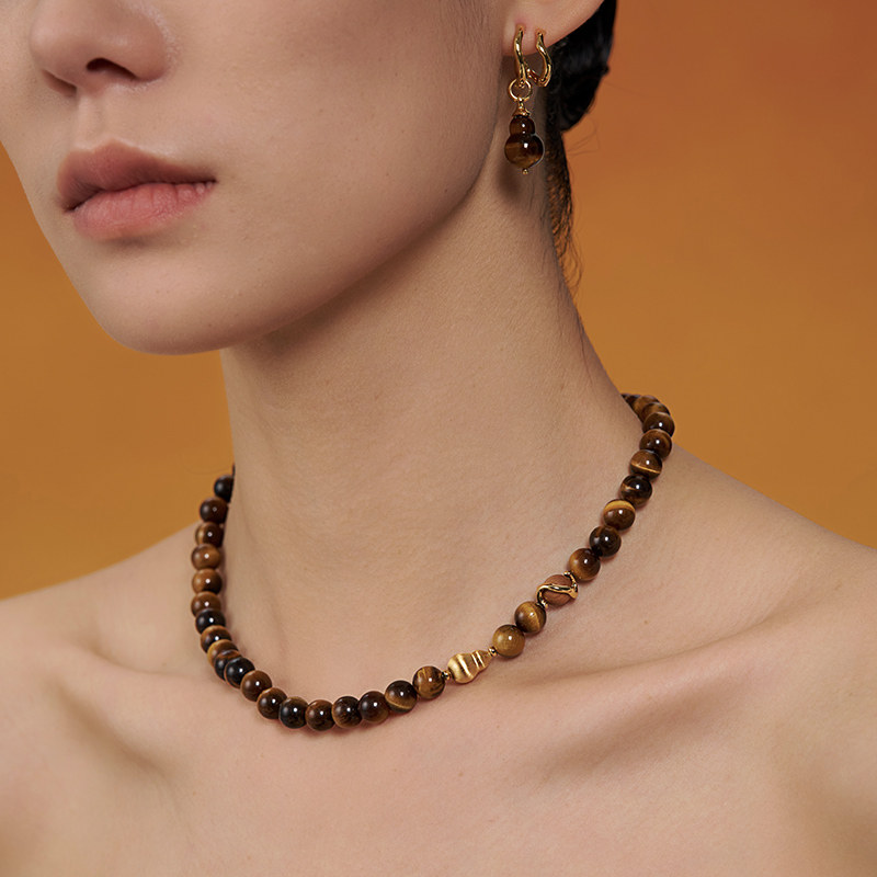 盐岛葫芦虎眼石串珠项链choker设计款高级感轻奢风小众锁骨颈链