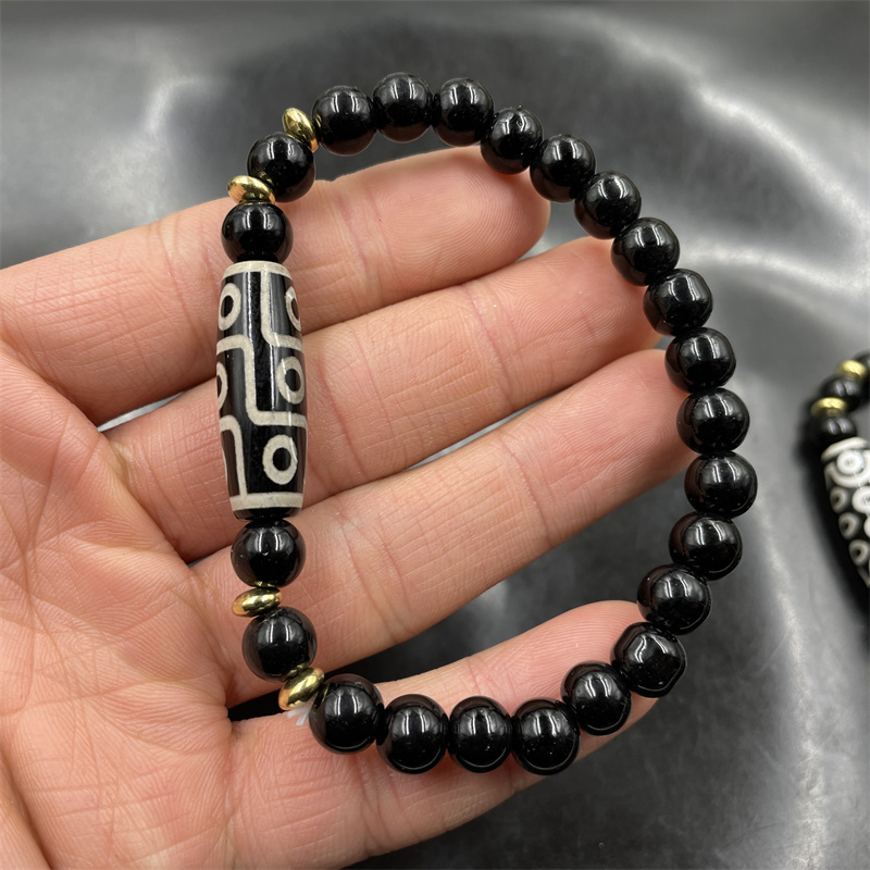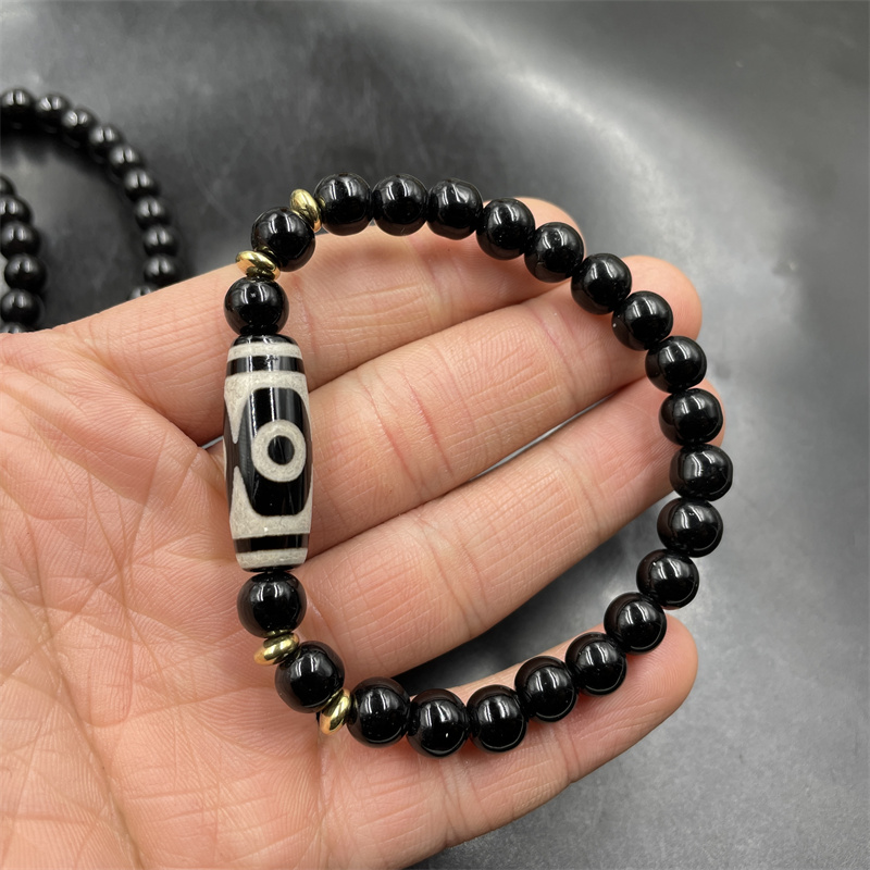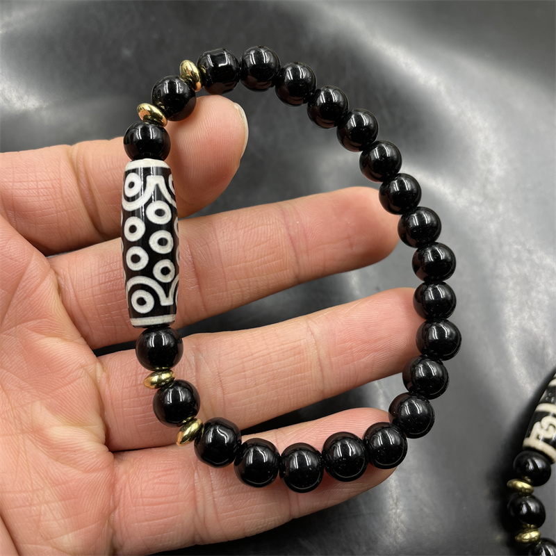 四海玉器 天然正品天珠玛瑙手链 藏式复古黑色老玛瑙勒子手串