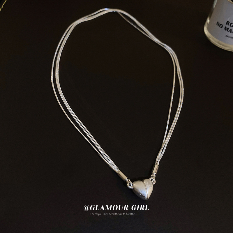 简约磁吸爱心多层锁骨链清新个性冷淡风百搭通勤2025新款时尚项饰