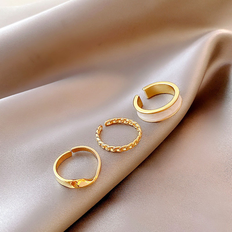 日韩素圈三件套组合戒指女ins风冷淡风开口指环时尚简约复古手饰