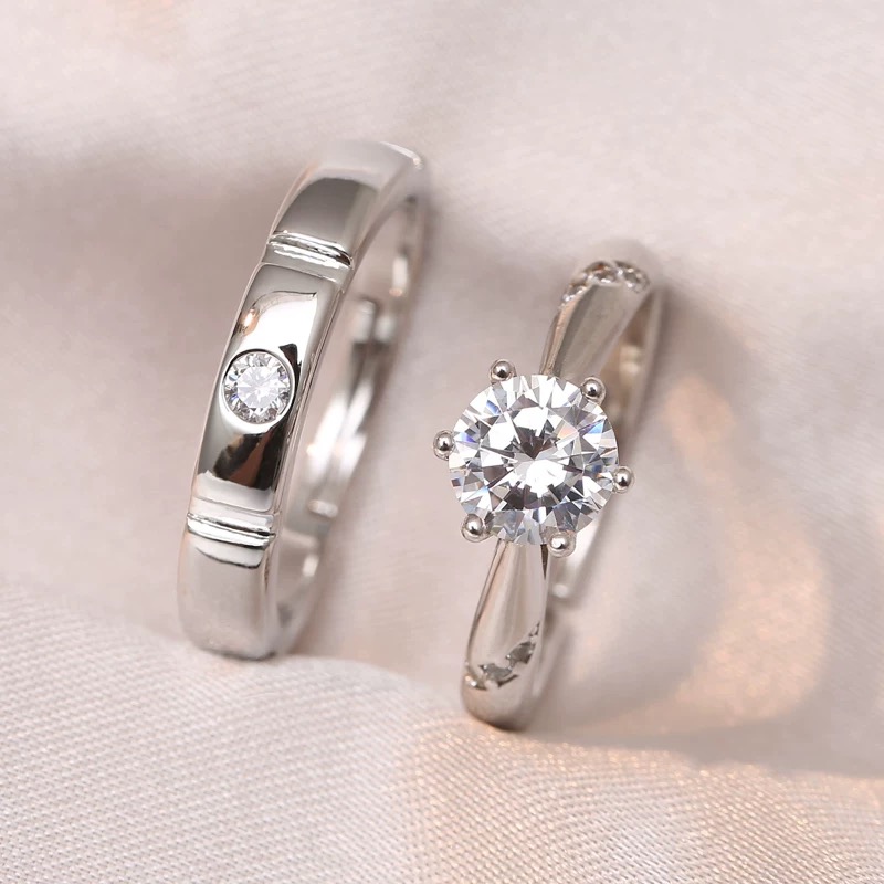 婚礼情侣结婚对戒活口可调节一克拉六爪戒指仿真钻戒仪式用新款