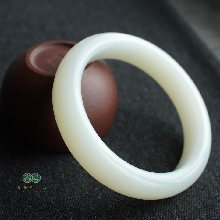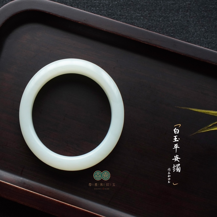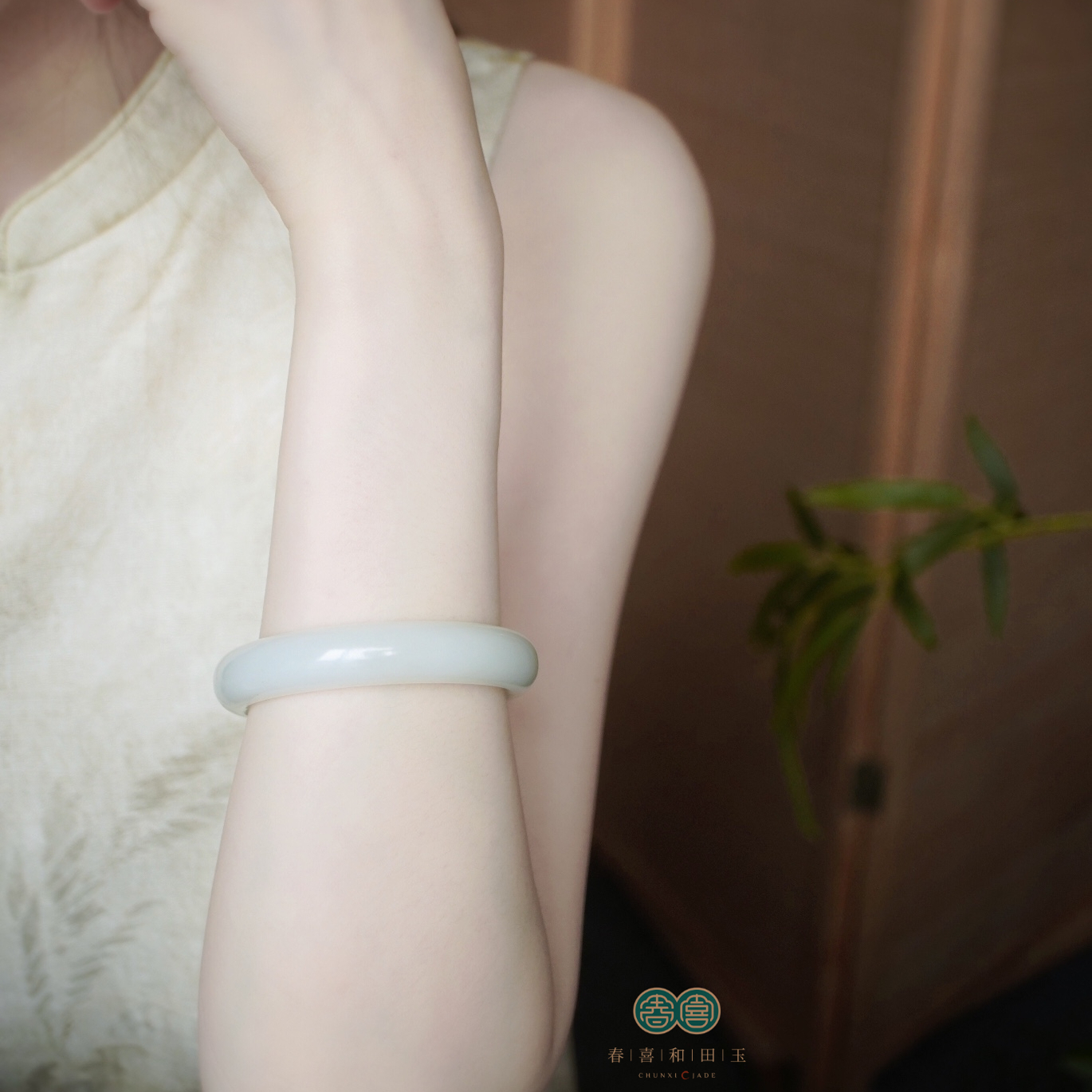 可玉春喜暖白平安镯——天然和田玉手镯暖白色正圈时尚气质女款