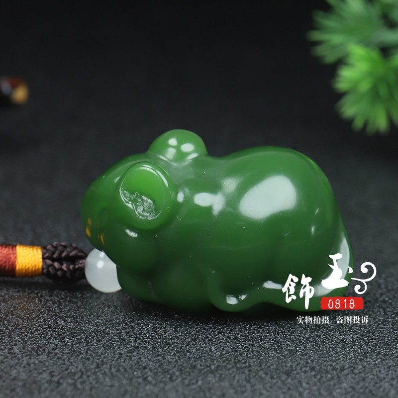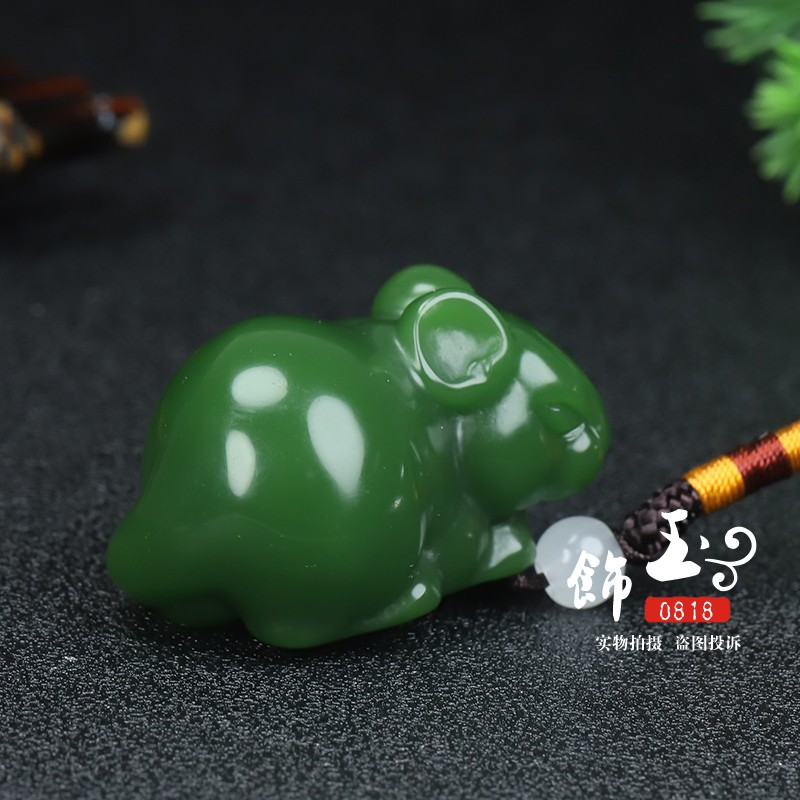 和田玉生肖玉鼠吊坠新疆玉招财老鼠挂件把件男女碧玉立体老鼠玉佩