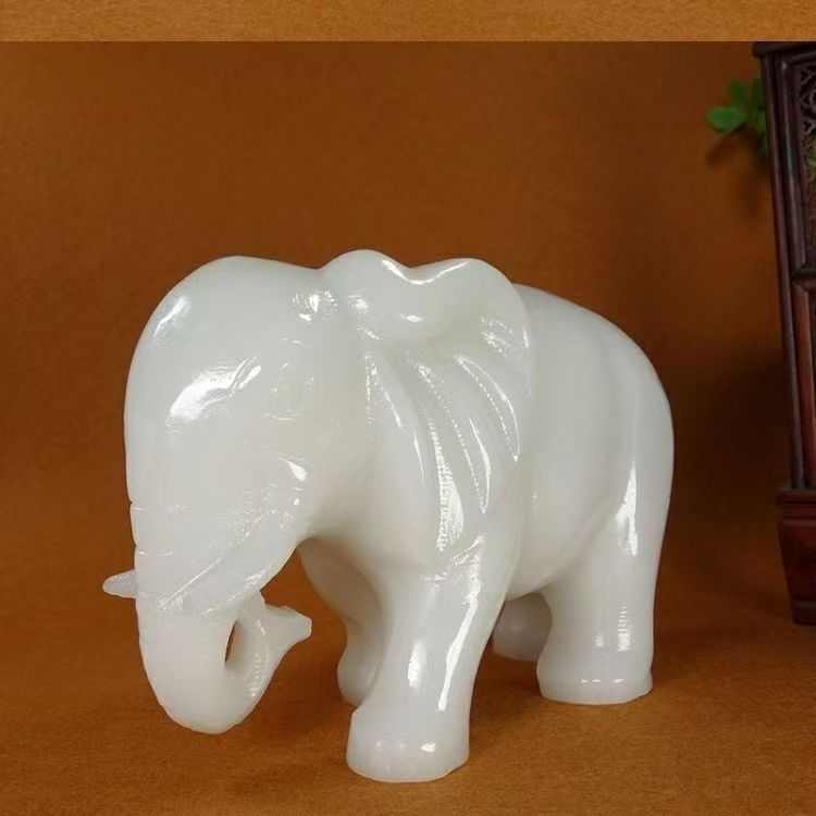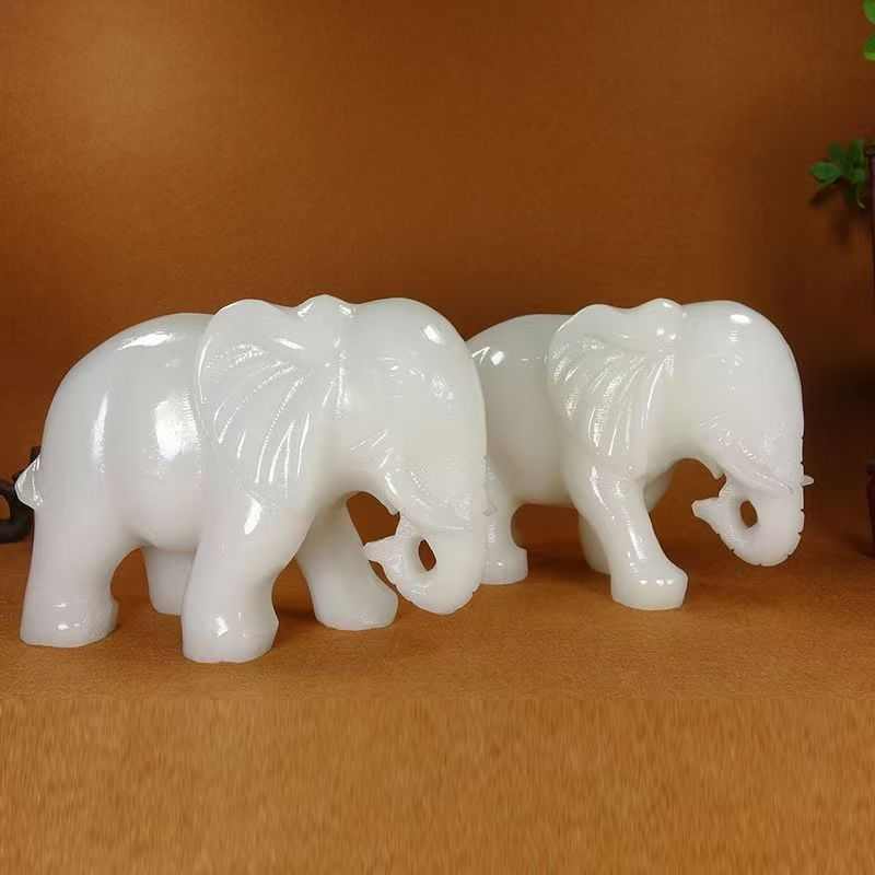 天然阿富汗白玉大象玉石摆件一对石雕客厅招财办公桌摆放玉工艺品