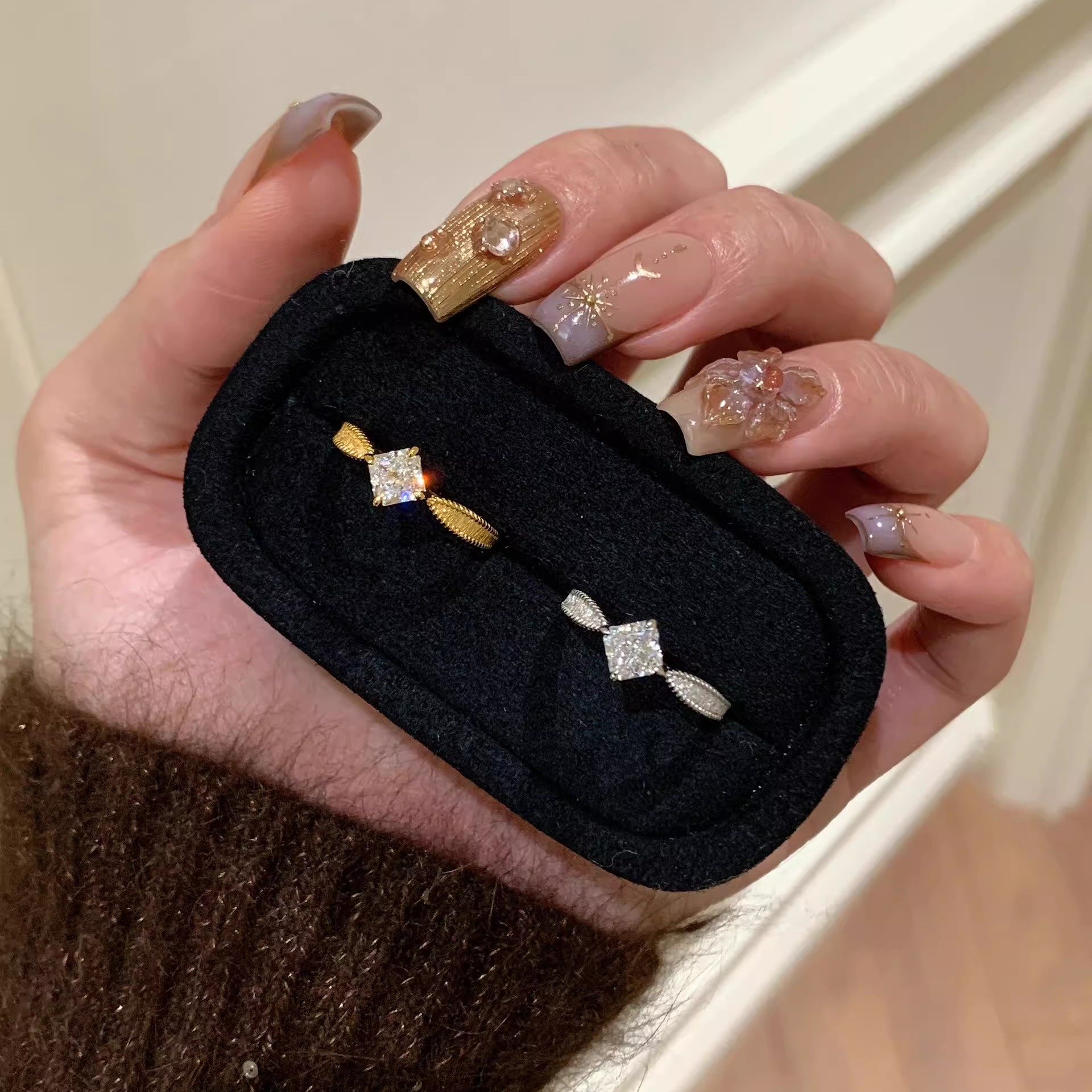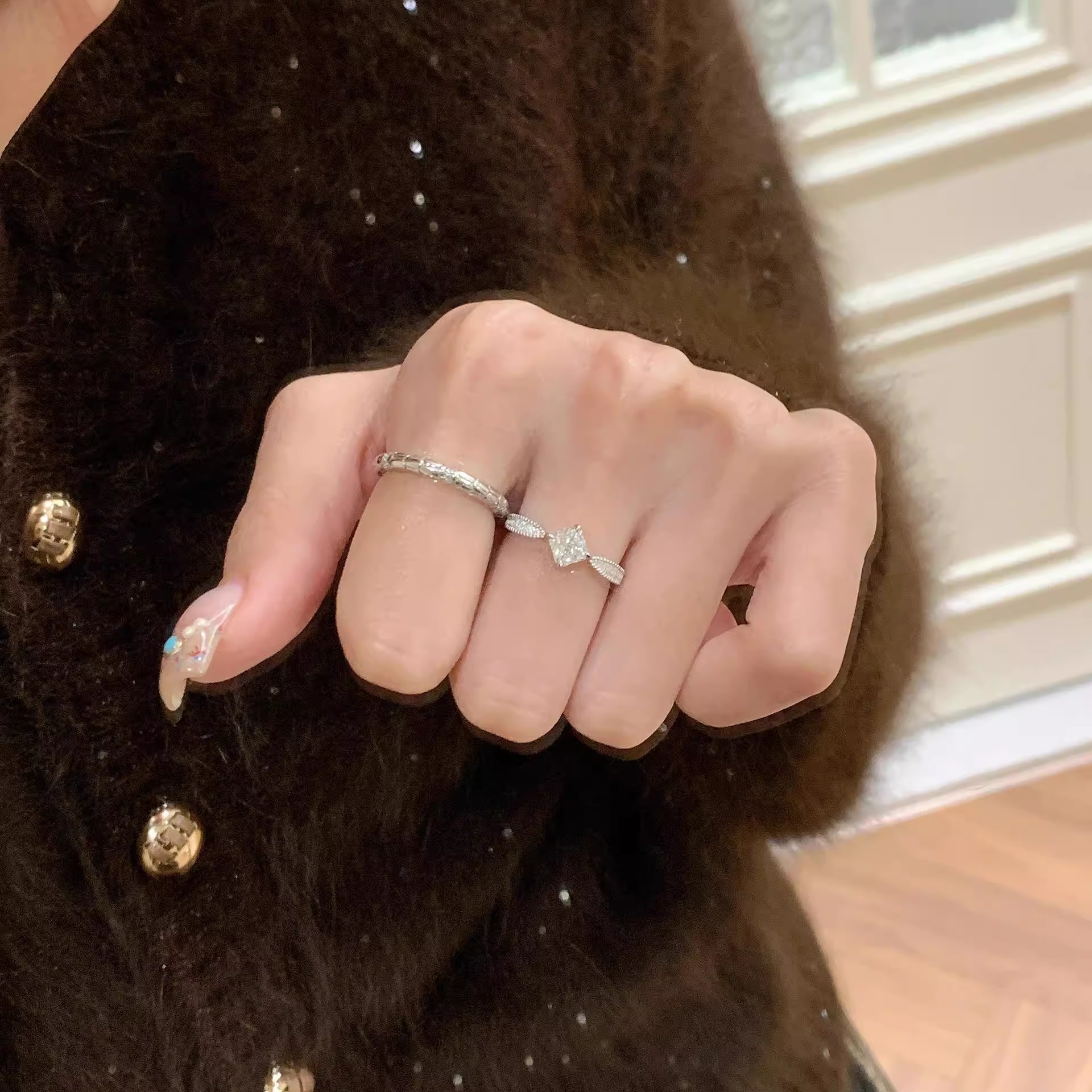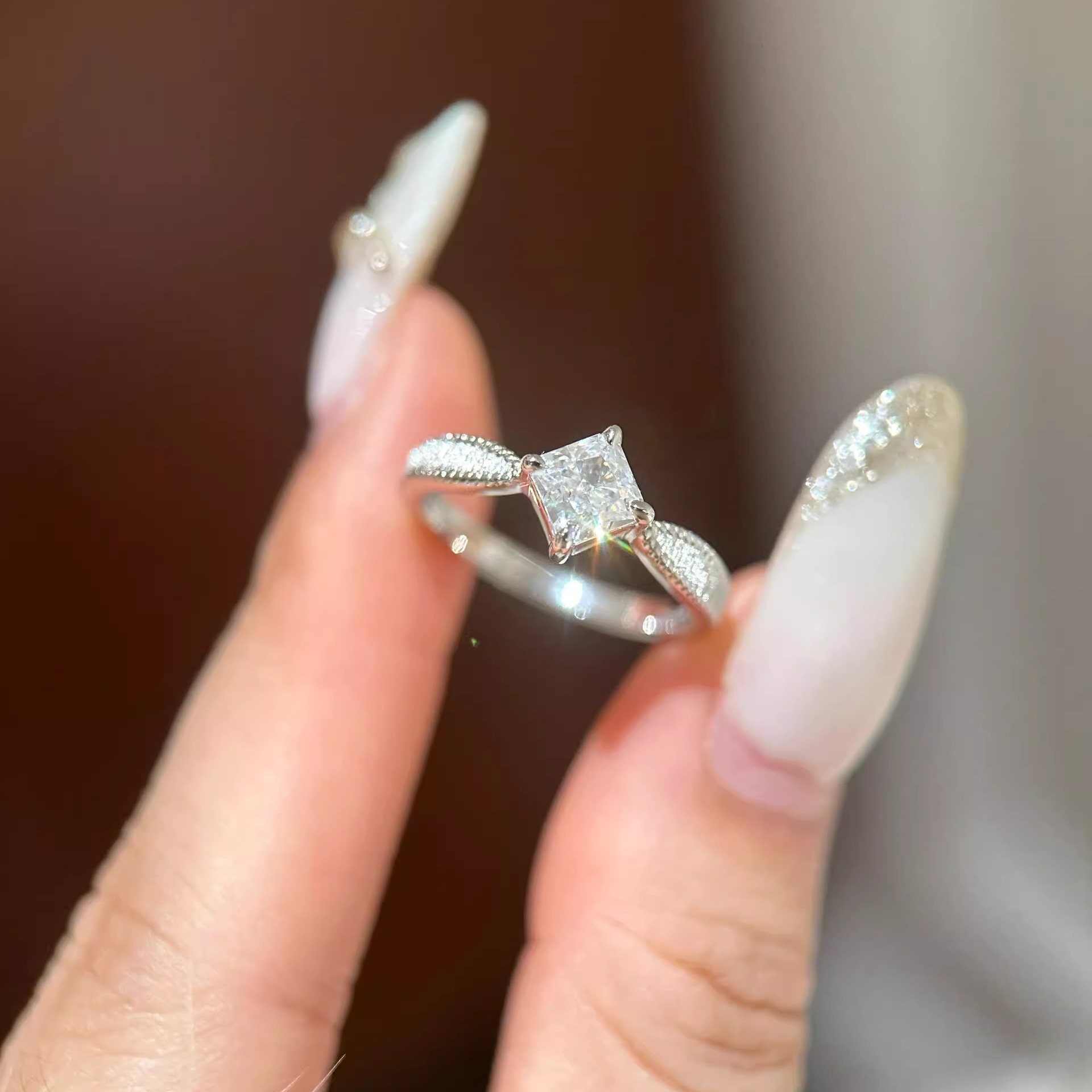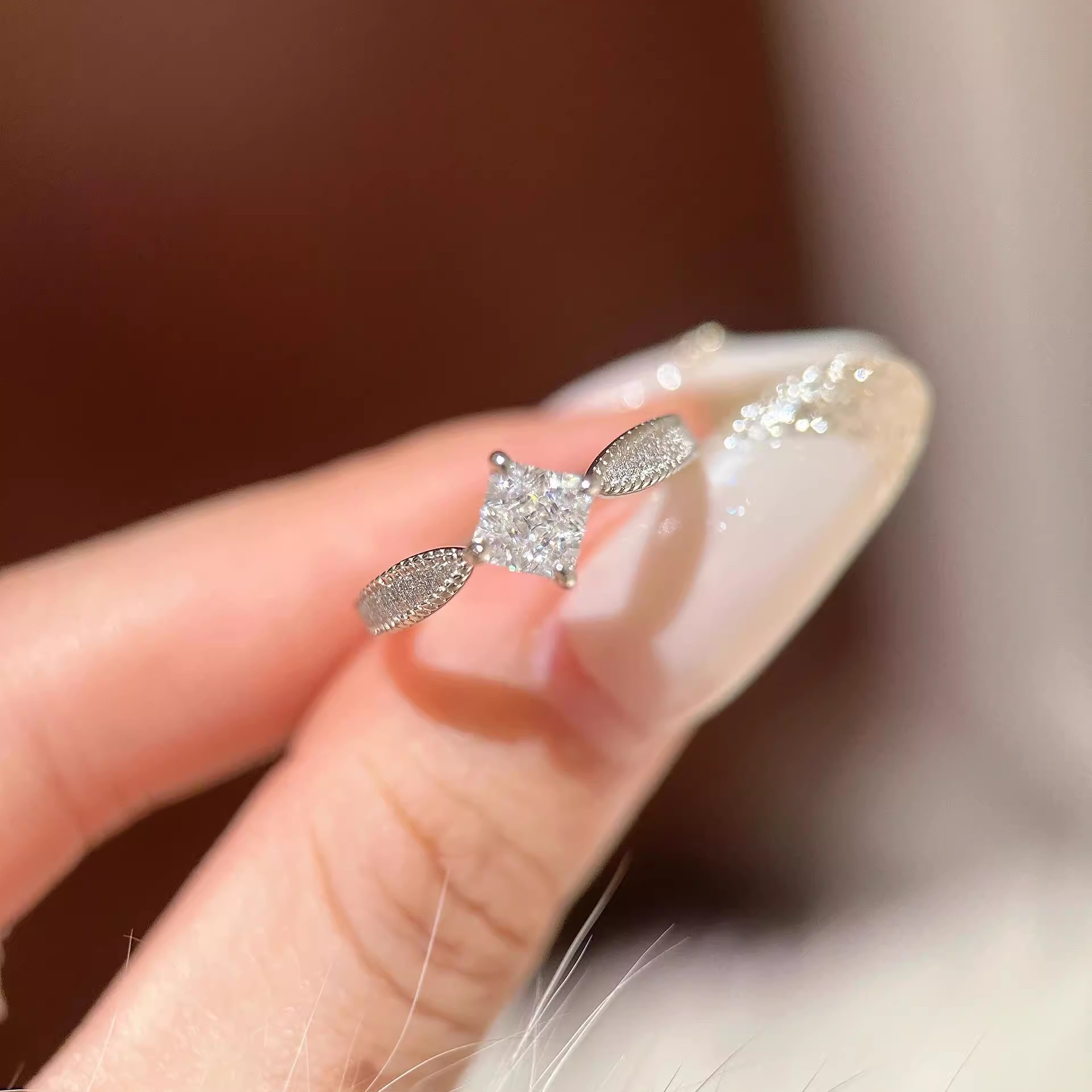 小方糖戒指S925纯银女公主方钻戒拉丝复古百搭轻奢小众设计感闭口