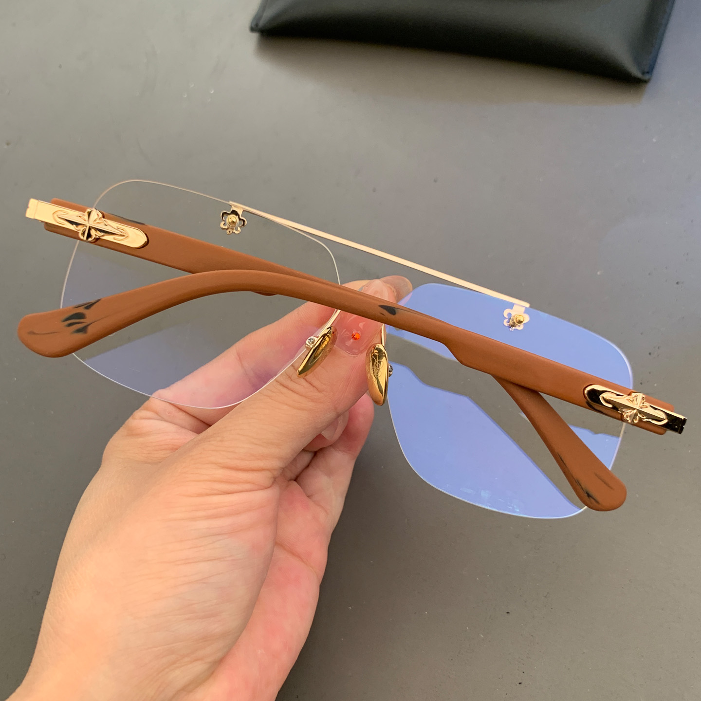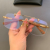 麦克心罗心眼镜框架新品大框复古打孔无框蛤蟆镜大脸型男女近视镜