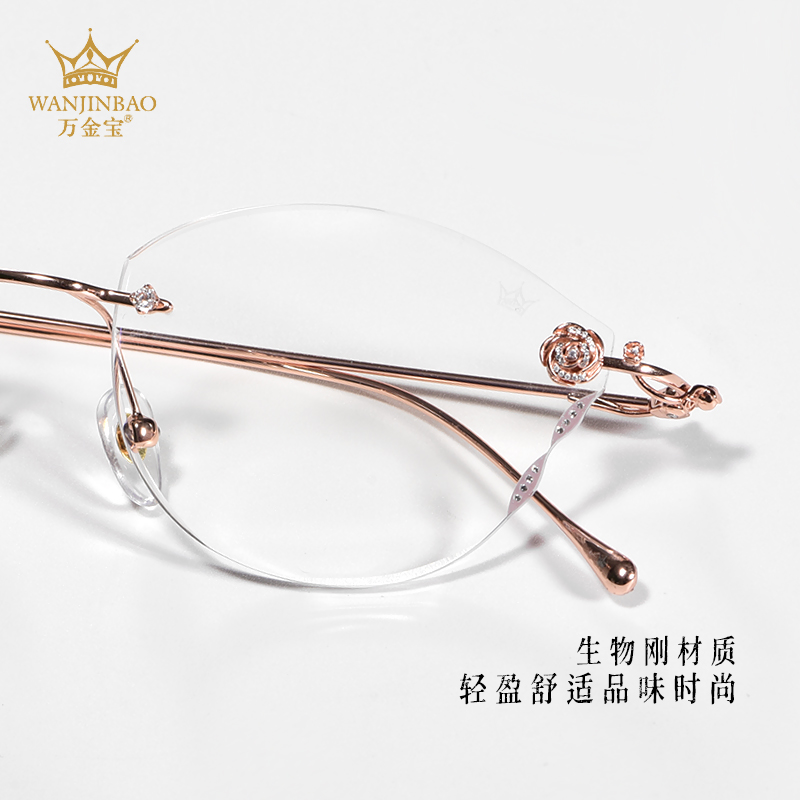 万金宝花开富贵洛神玫瑰镜腿无框精致钻石切边女士近视眼镜MA5087