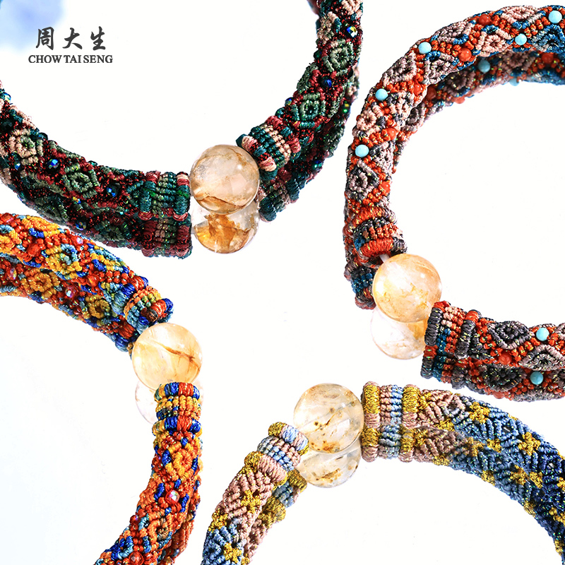 周大生官方天然水晶手串女特色编绳手链小众高级转运珠送女友礼物