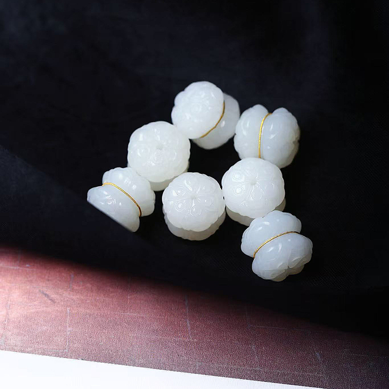 天然和田玉俄料羊脂白玉雕刻并蒂莲18K金镶嵌吊坠路路通女款玉石