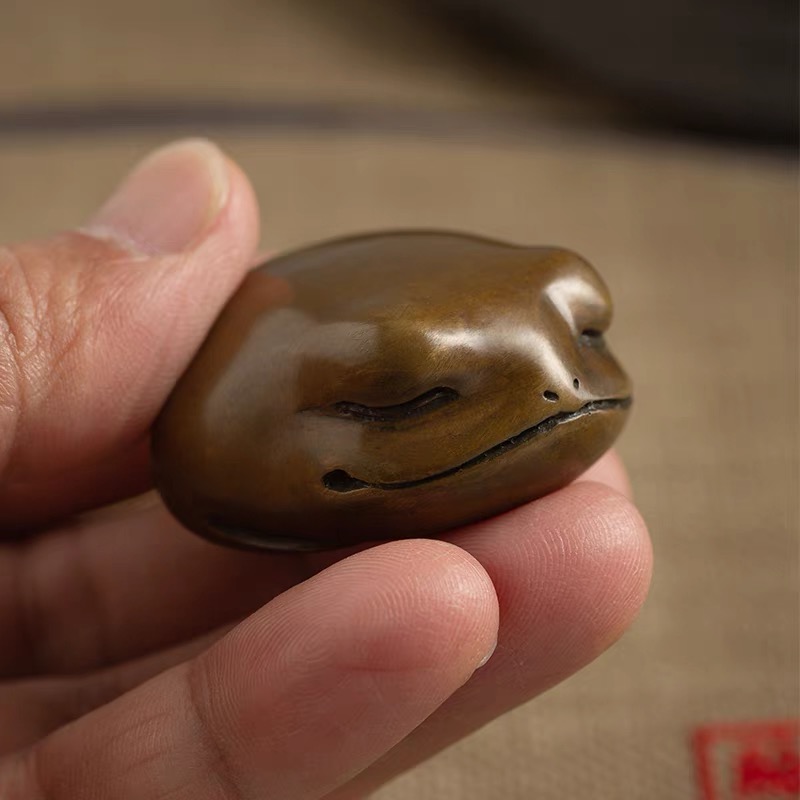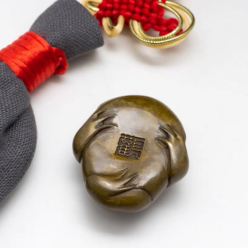 观铜文创礼品金蟾手把件男士随身把玩办公室桌面文创茶宠铜摆件