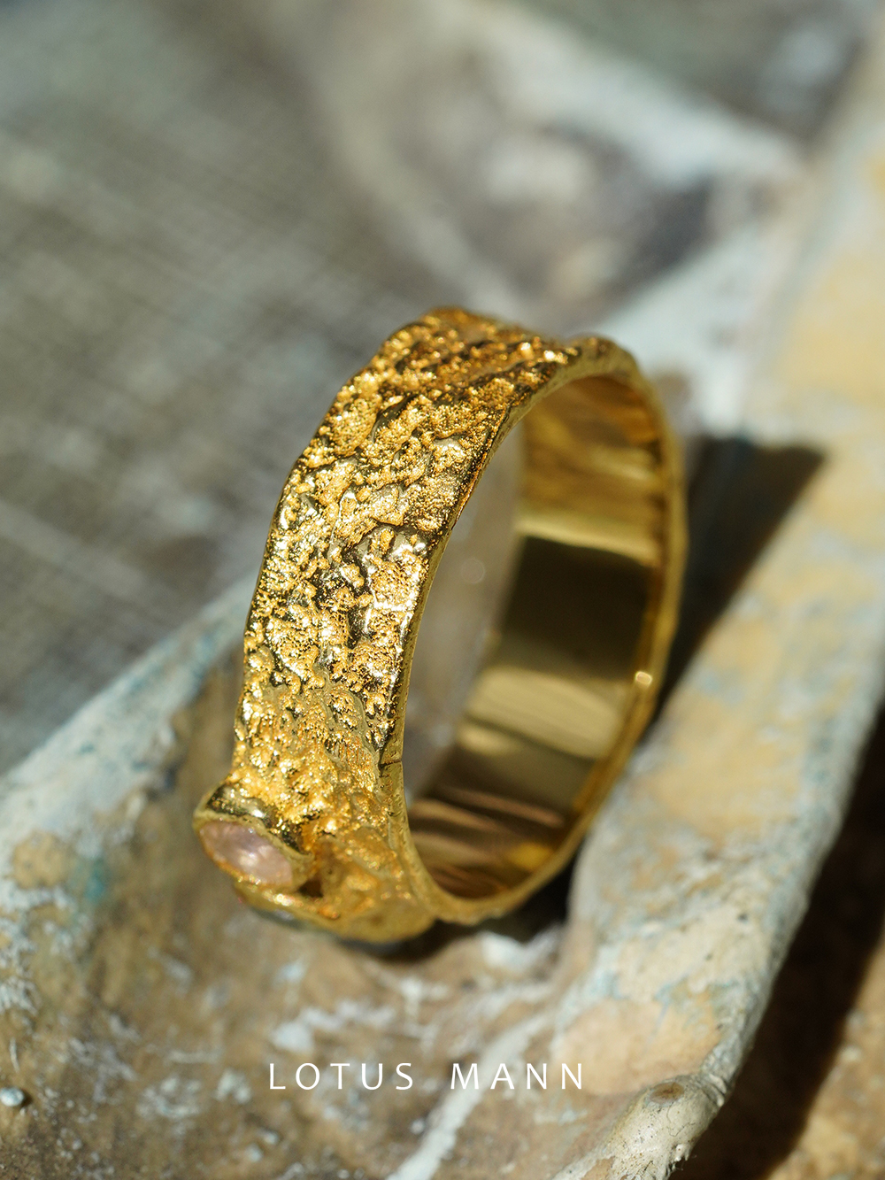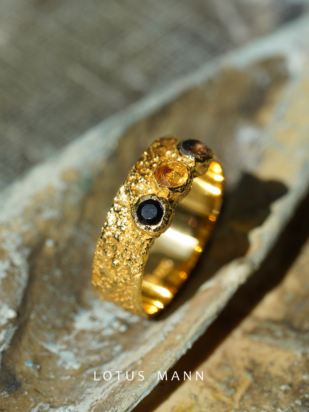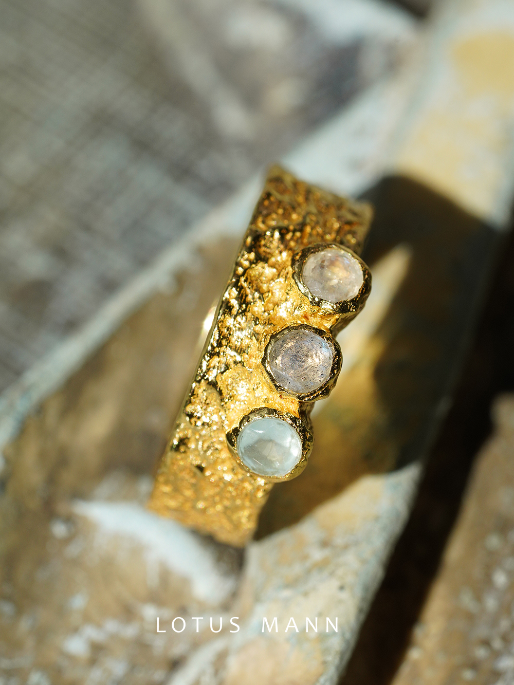 金箔.三色宝石.进口工艺 质感银镀厚金戒指