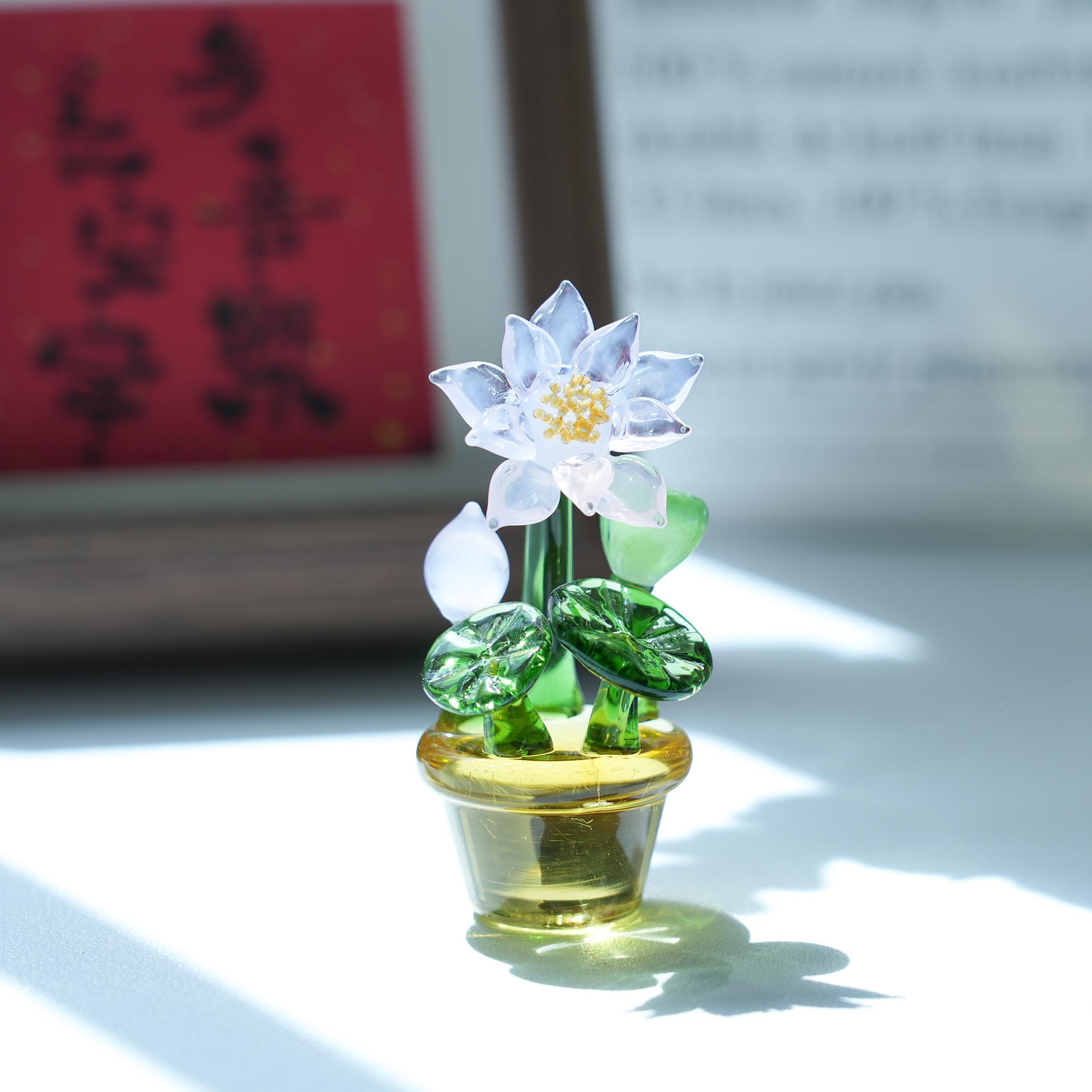 淄博琉璃仿真荷花盆栽摆件桌面绿植好运莲莲家居玄关装饰品礼物