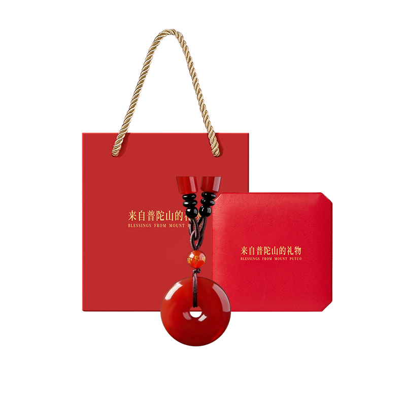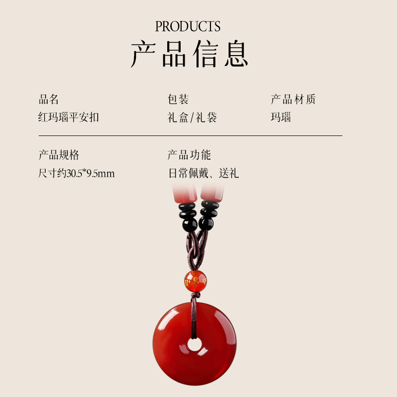 遇见普陀山红玛瑙平安扣吊坠红色玉石水晶项链男女款七夕情侣礼物