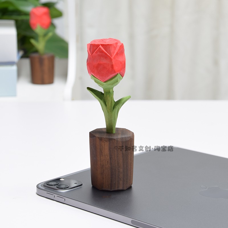 手工木雕小王子的玫瑰花家庭电视机柜电脑桌摆件饰品客厅生日礼物